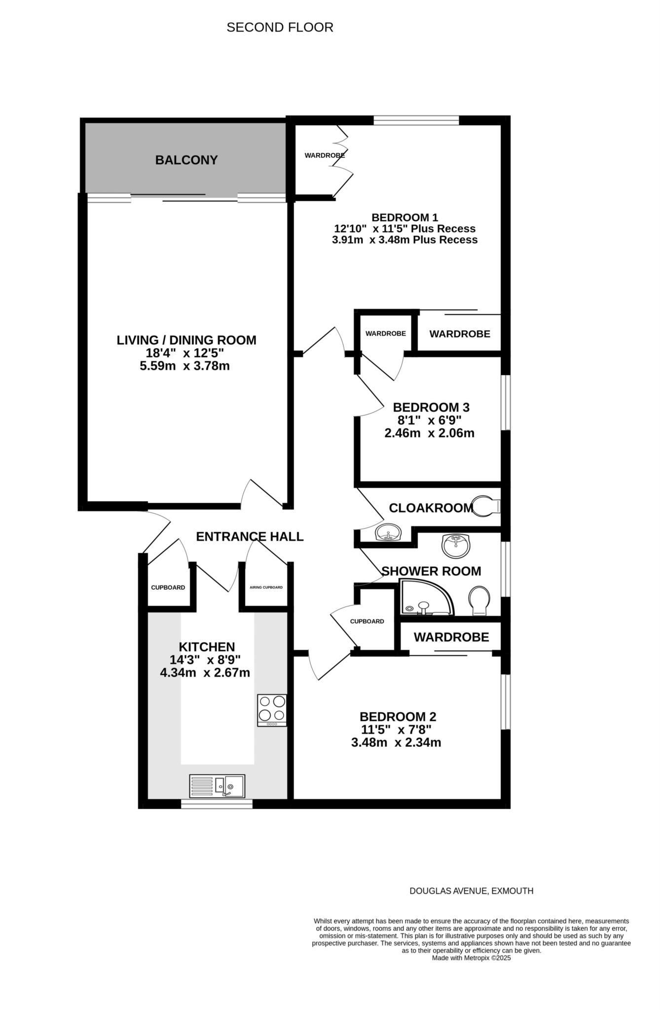 Gaining far reaching Sea, South Devon Coastline, Haldon Hill & Maer Valley views is this well presented, 3 bedroom, second floor apartment, with garage and offered to the market with NO ONWARD CHAIN. This uPVC double glazed property is heated via electrically heated ceiling heating. The accommodation comprises of living / dining room with access to the Southerly facing Balcony that gains those Sea & Maer Valley views, kitchen with appliances, 3 bedrooms all having built - in wardrobes, shower room with WC and further WC. The garage is in a block to the front of the building, there is visitors parking and good sized, Southerly facing, Communal gardens to the rear. Enjoying an equal share of the Freehold and a long lease, an appointment to view is advised.