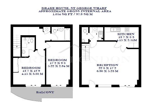 Available NOW. With an expansive internal space, this 1,054 sq ft (97.9 sqm) two bedroom, two bathroom duplex apartment is available to rent through Prime London and offers a fantastic position within the highly sought-after St. George Wharf.
