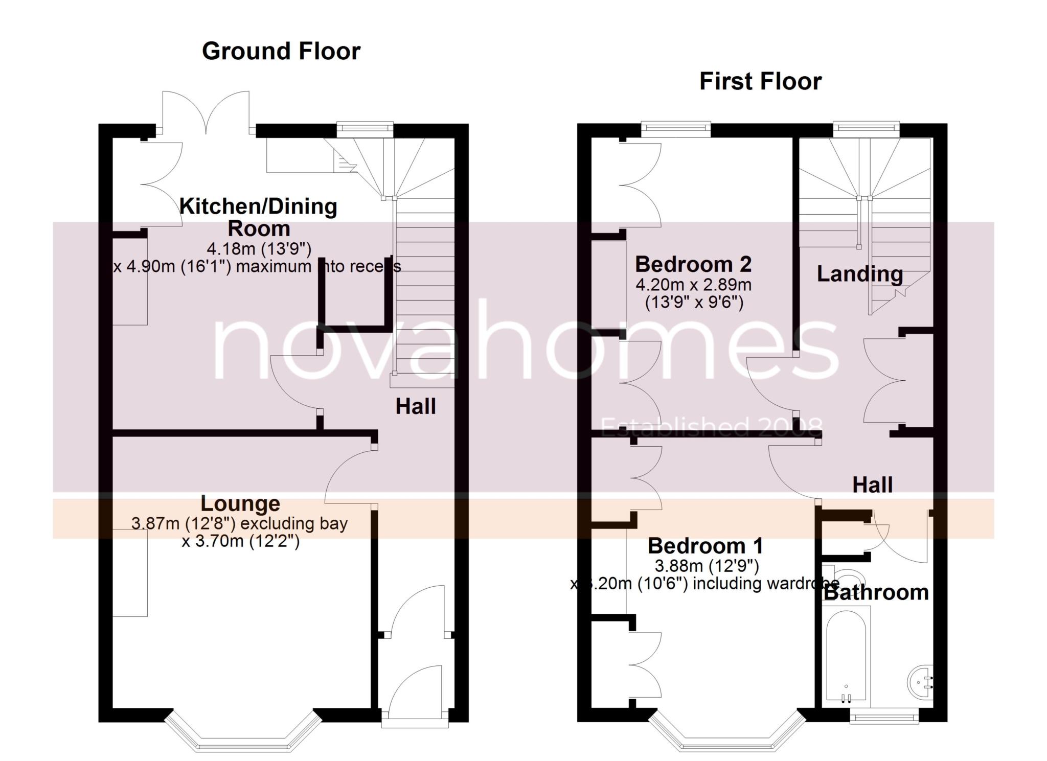 Lounge 3.87m x 3.70m (12`8" x 12`2") excluding bay; bright reception room with feature fireplace and bay window.