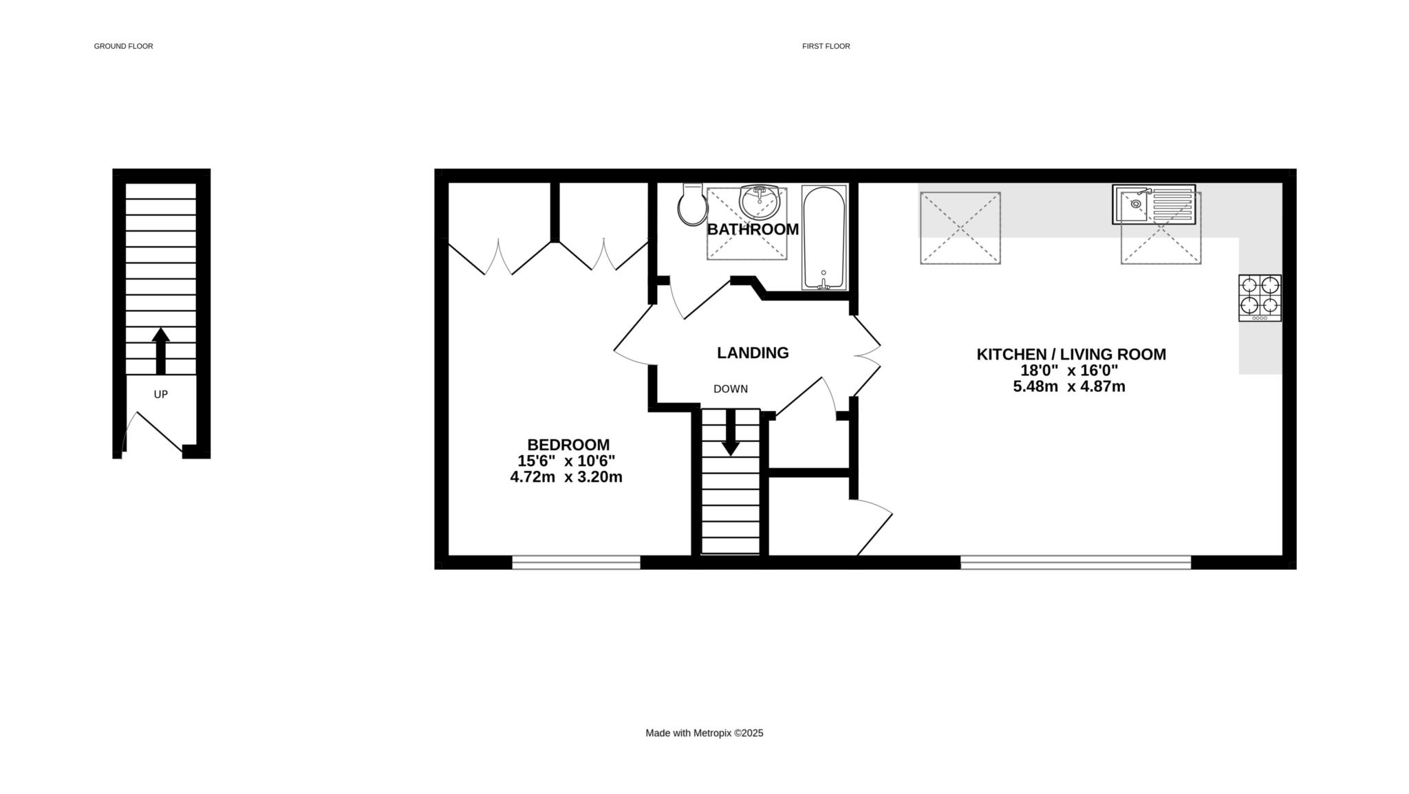 The property itself offers a generous amount of space throughout, with its own main entrance you enter in to the split landing in which divides the living and sleeping accommodation. To one side you have open plan living but with a difference, cleverly designed with its large living dining room and open plan kitchen. On the other side of the property you will find a large bedroom with two built in wardrobes. There is also a main bathroom to finish the accomodation. The property also boasts from two large storage cupboards, while outside there is a small frontage to the property, along with allocated parking to the rear of the property.