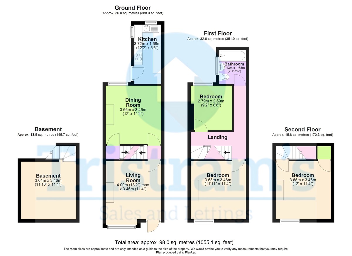 Measurements: The room sizes are approximate and are only intended as a guide to the size of the property. We would advise you to verify any measurements that you may require.