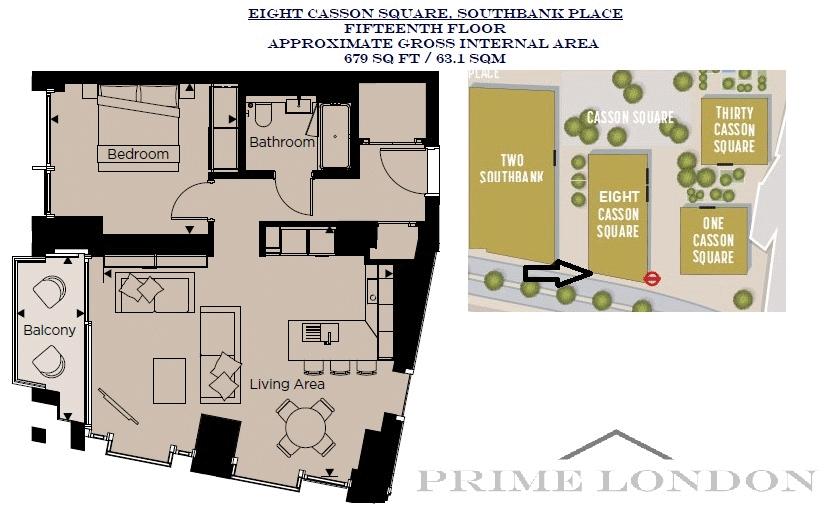 A fifteenth floor east facing apartment within Eight Casson Square, with a bright dual-aspect, available for sale through Prime London for completion in Q4 2019. Residents at Southbank Place will benefit from the highest quality of living, with access to the residents' only amenities floor, which will include his and hers steam and sauna rooms, a gymnasium, a 25-metre swimming pool, treatment rooms, wet room and gym classes. Residents will also be able to make use of an outdoor terrace and residents' lounge, ideal for social gatherings and business meetings alike.Additionally, the development will include 48,000 sq. ft. of shops, restaurants and bars, and a direct entrance to London Waterloo Station.The award winning apartments themselves have been designed to the highest specification and have a timeless quality.