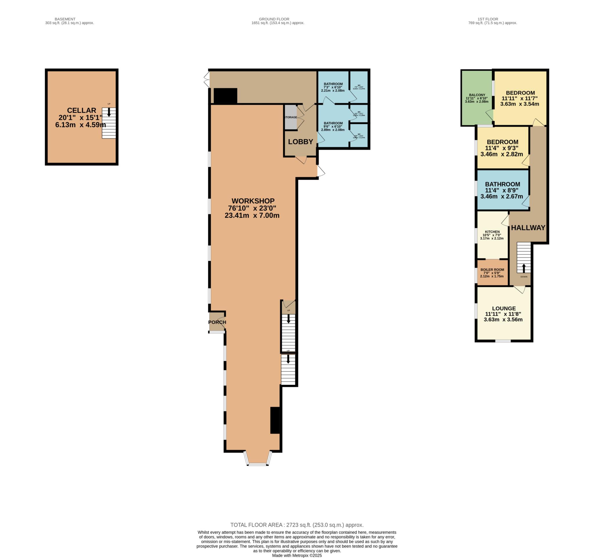 Above the commercial space, the property includes a two-bedroom flat, providing convenient on-site living or additional rental income. The flat comprises: