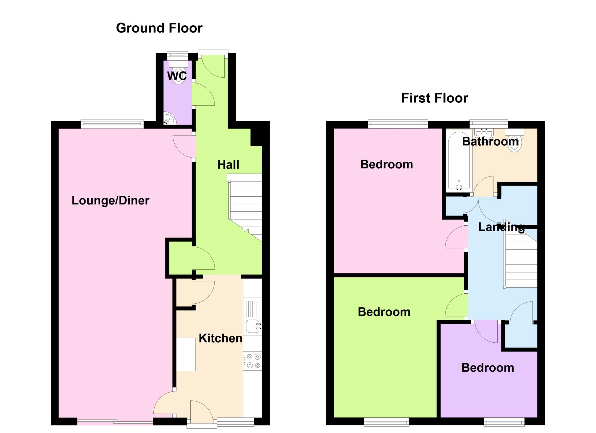 A 3 bed middle terraced house with lounge/dining room, modern white kitchen and cloakroom. On the first floor is a modern bathroom. The property has gas central heating and PVCu double glazing installed, and low maintenance gardens.