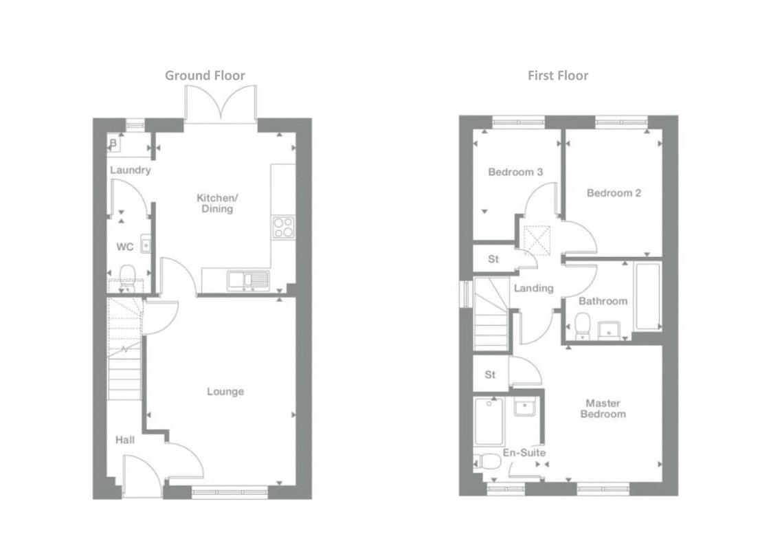 Upstairs, three well-proportioned bedrooms await. The master bedroom boasts its own sleek en suite shower room, while the second double bedroom and versatile third bedroom (ideal as a study or nursery) share the stylish family bathroom.