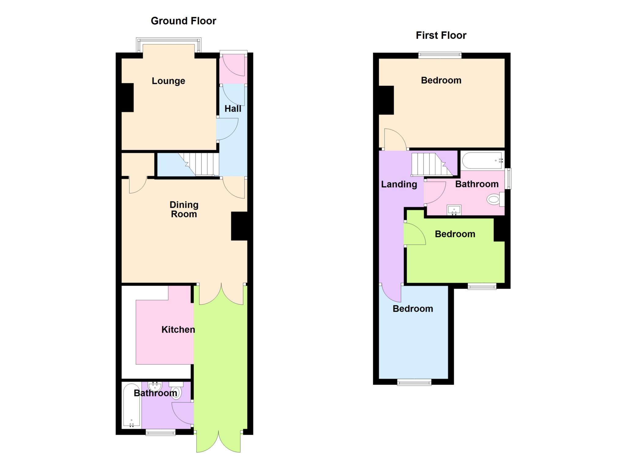 PVCu double glazed window, wall mounted fan heater, panelled bath, pedestal hand basin, W.C., access to loft space.