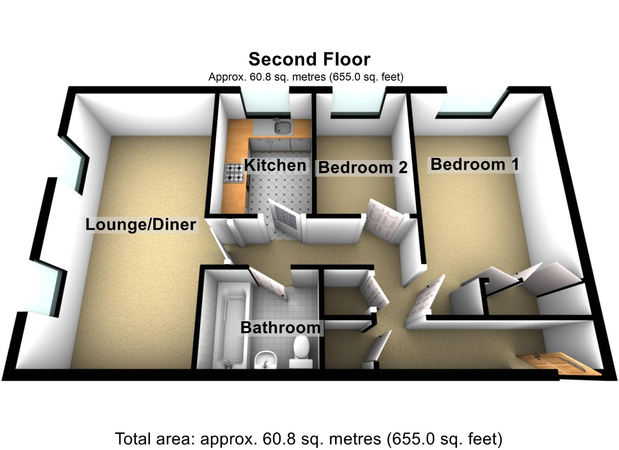 Once you are past the Entry Phone System you will find a well- maintained communal entrance hall where you have the choice of stairs or a lift to the second floor. Inside the property, you will find an Entrance Hall (with 2 cupboards), 16ft main Bedroom (with fitted wardrobes), Bedroom 2, Fitted Kitchen, Bath Room and a 19 6 foot Lounge/Diner with 2 windows which makes a nice bright and airy room.