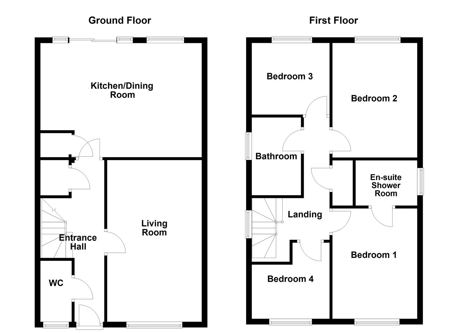 The property briefly comprises of an entrance hall, storage cupboard, living room, downstairs W.C., and open plan modern fitted kitchen dining room to complete the accommodation on the ground floor. Upstairs to the first floor landing there is access to four bedrooms and the modern house bathroom. Bedroom one benefitting from fitted wardrobes and an en suite shower room. Outside, the front of the property features a small lawn with bushes, a paved path to the entrance, and a side driveway with an EV charging point leading to a detached garage with external sensor lighting. At the rear, there is a spacious lawned garden with a stone paved patio, planted shrubs, and an additional patio, ideal for outdoor dining and entertaining purposes.