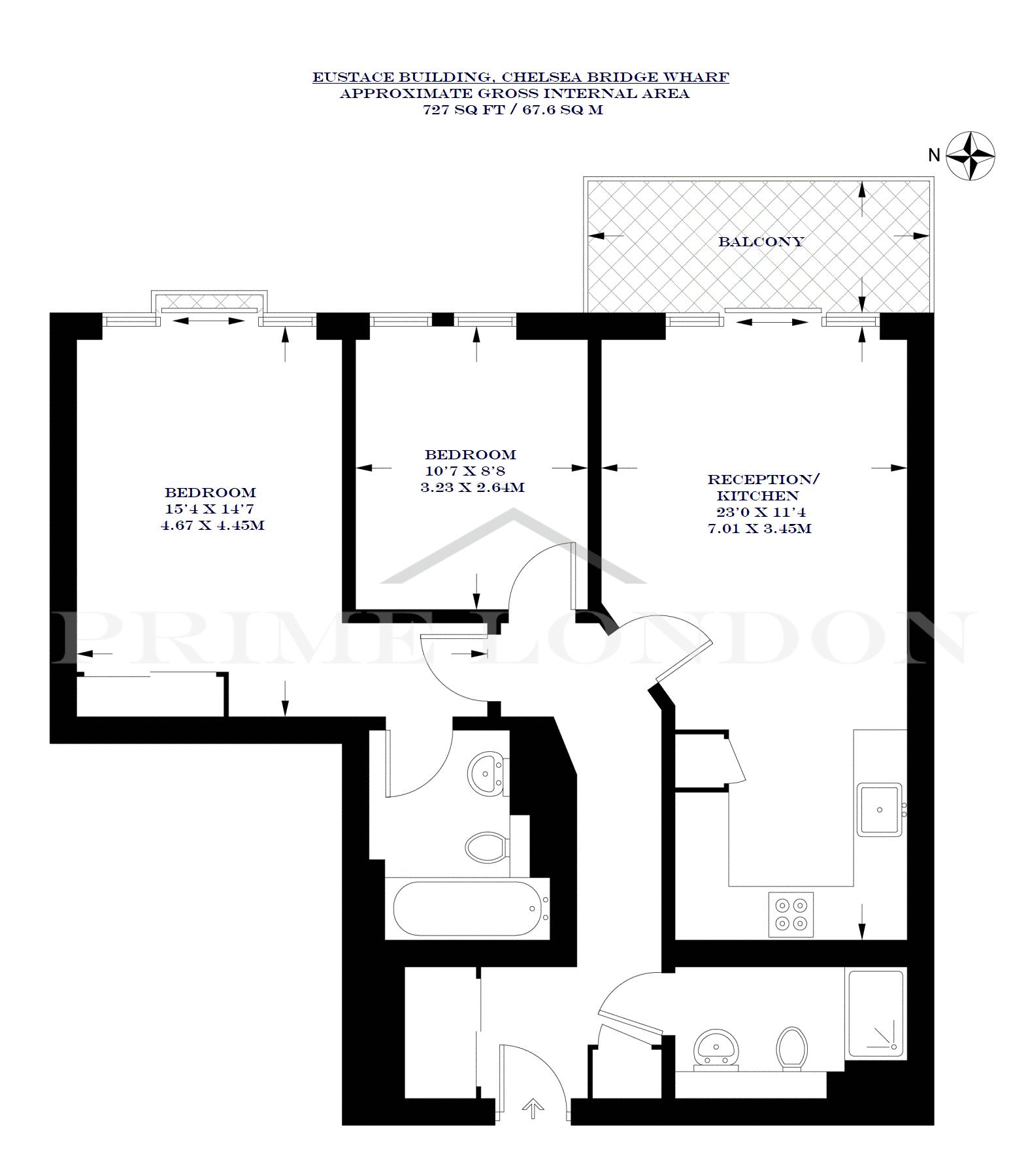This modern two bedroom apartment in the Eustace Building at Chelsea Bridge Wharf, with private balcony and views over the peaceful communal gardens, is available for chain free sale through Prime London.