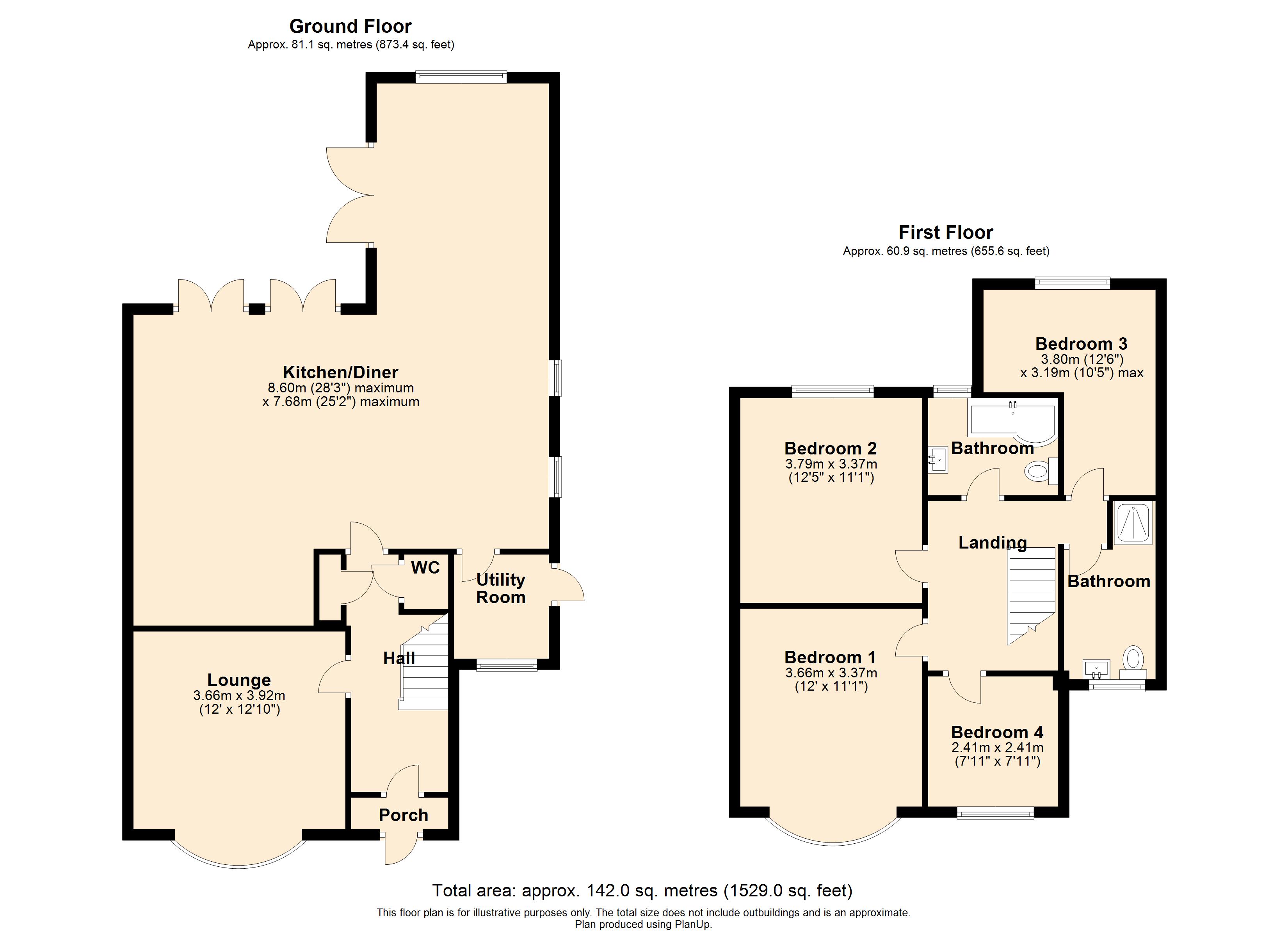 To the first floor, Primary bedroom with bay window and built in wardrobes, two further double bedrooms and a single bedroom. There is also a family bathroom and a shower room which have both been fitted with modern contempory suites.