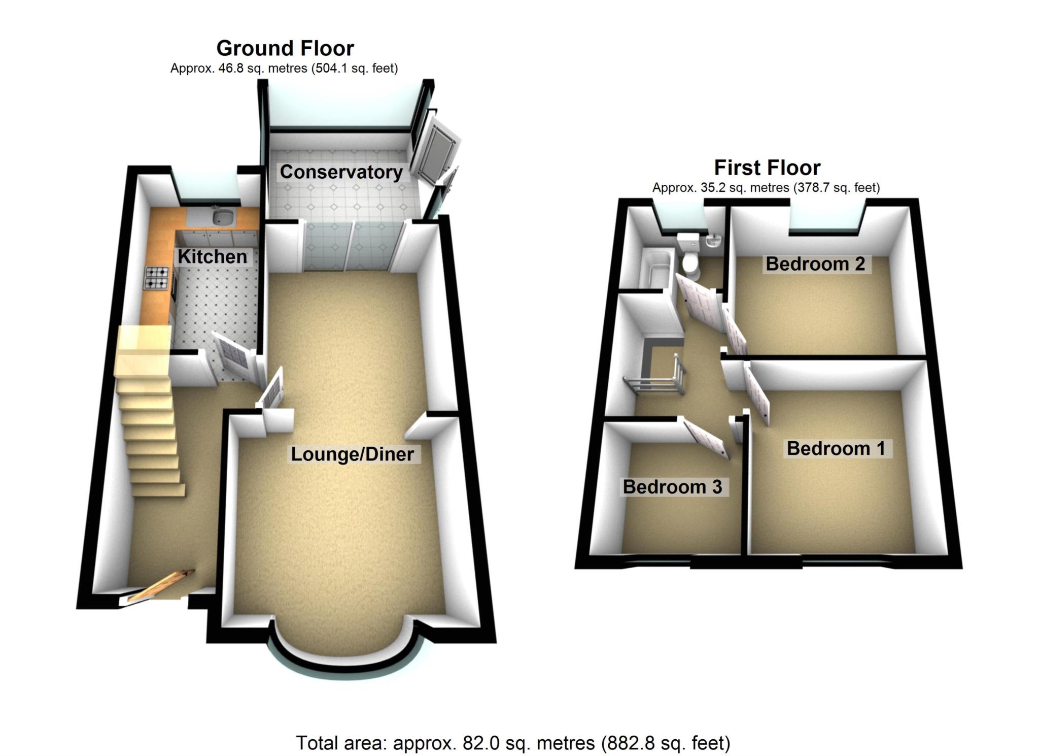 The ground floor features a spacious open-plan lounge/diner, perfect for relaxing or entertaining. A lean-to/conservatory extends from the dining area, offering additional living space with views of the rear garden.