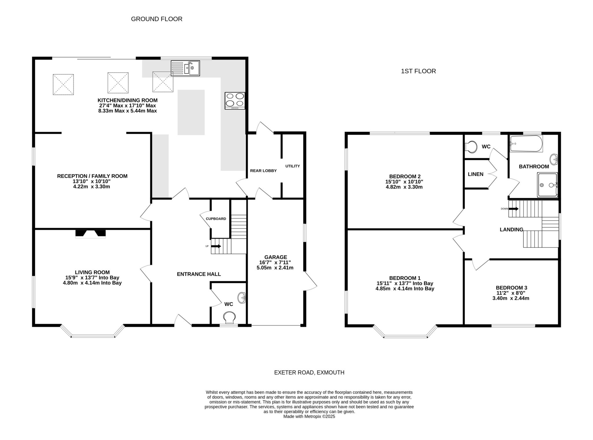 A well presented and deceptively spacious 3 double bedroom and 2 reception room detached house with a large kitchen / breakfast room and a good sized and level garden to the rear that faces in a South Westerly direction. This gas centrally heated (from condensing boiler) and uPVC double glazed property comprises, on the ground floor, of cloakroom, bay fronted and dual aspect living room, 2nd reception room, a 27` and modern fitted kitchen / dining room with access to the rear garden and a utility. On the first floor are the 3 double bedrooms, bathroom with separate WC. Subject to gaining the usual planning consents, the loft could be converted to provide further living accommodation if required. There is a single garage, ample off road parking and that level, Southerly facing rear garden. Handy for Exmouth Town Centre, Train Station, Schools and a Supermarket across the road, this property would, perhaps, make an ideal family home.