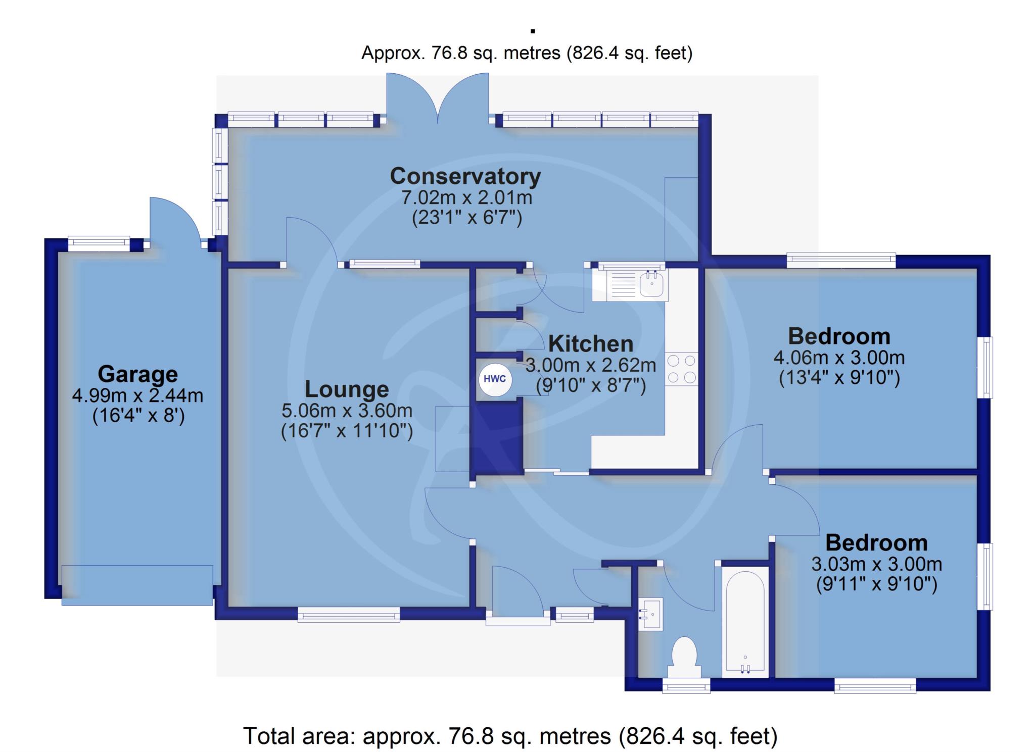 Presently the accommodation comprises a dual aspect lounge and a fitted kitchen, each opening into the conservatory.