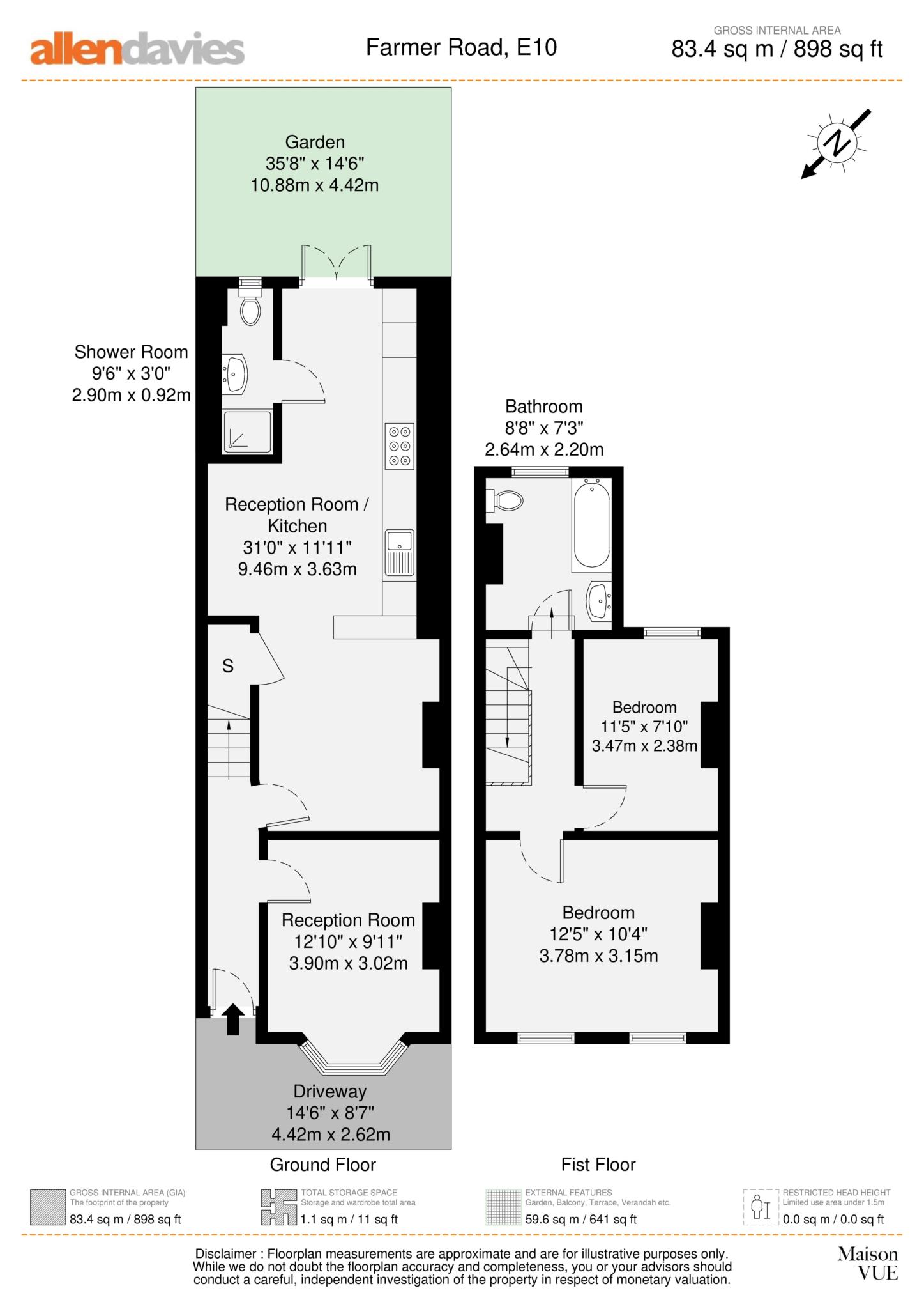 DRIVEWAY - 14'6" (4.42m) x 8'7" (2.62m)