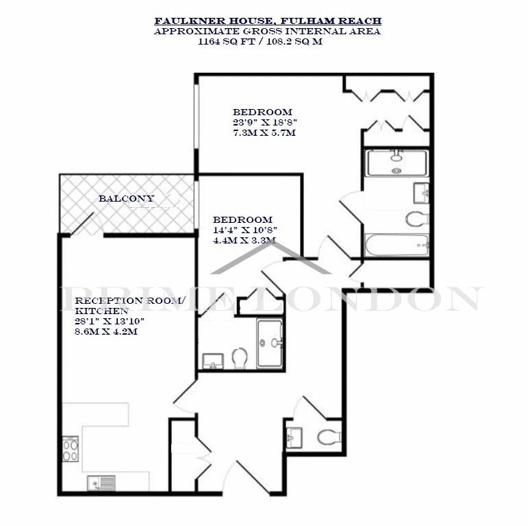 This fantastic higher floor two bedroom apartment with river views, located in the premier Faulkner House building or Fulham Reach, is available to rent through Prime London.