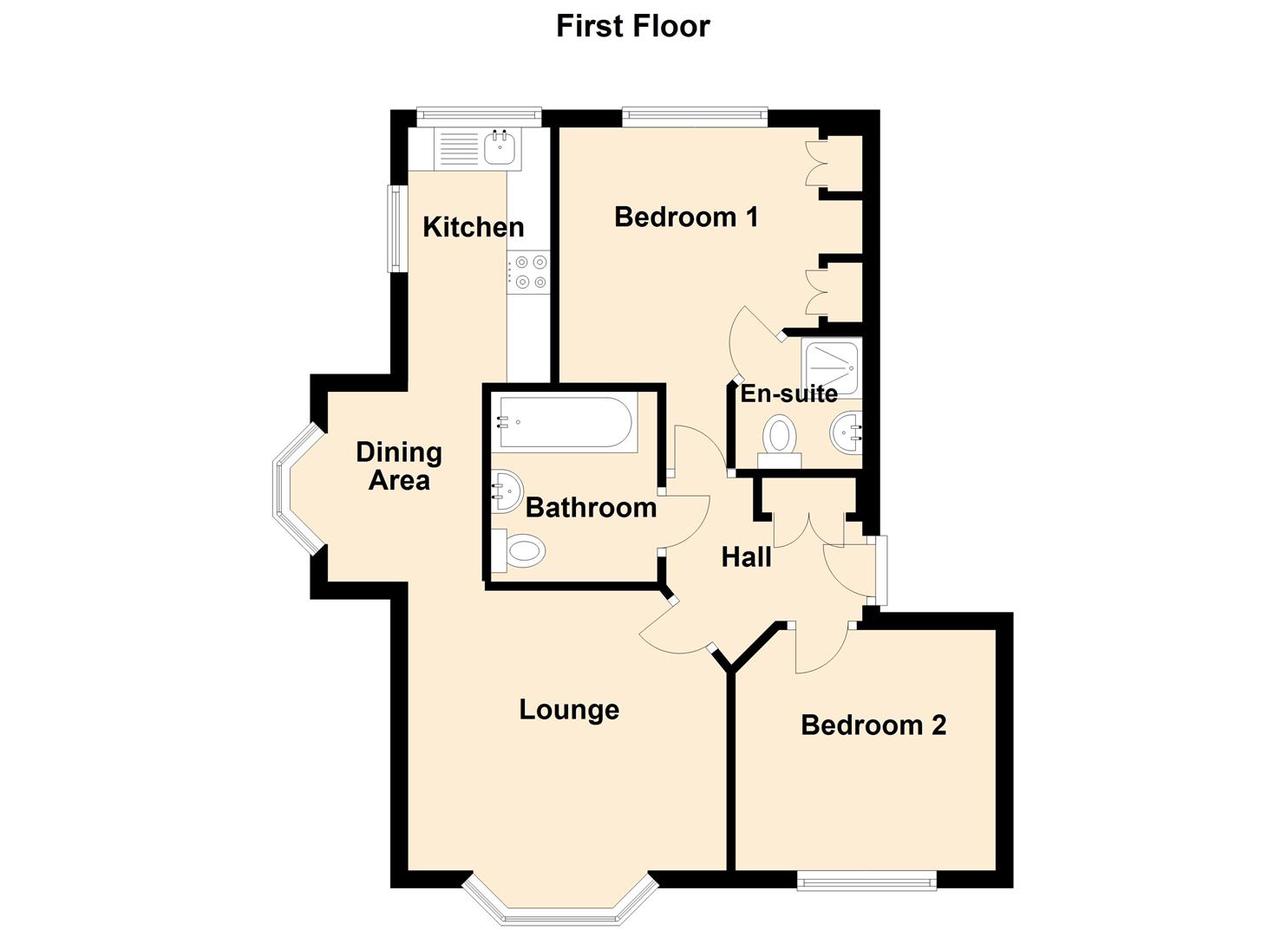 Access to the apartment is via a communal entrance and stairs leading to the first floor. Upon entering, you will find a bright lounge featuring a bay window and an adjoining dining area, perfect for relaxing or entertaining. The kitchen is fitted with modern units and includes an integrated oven and hob. The accommodation also comprises two bedrooms, with the main bedroom benefiting from fitted wardrobes and a private en-suite bathroom. Additionally, there is a family bathroom with WC. further benefits include gas central heating and double glazing.