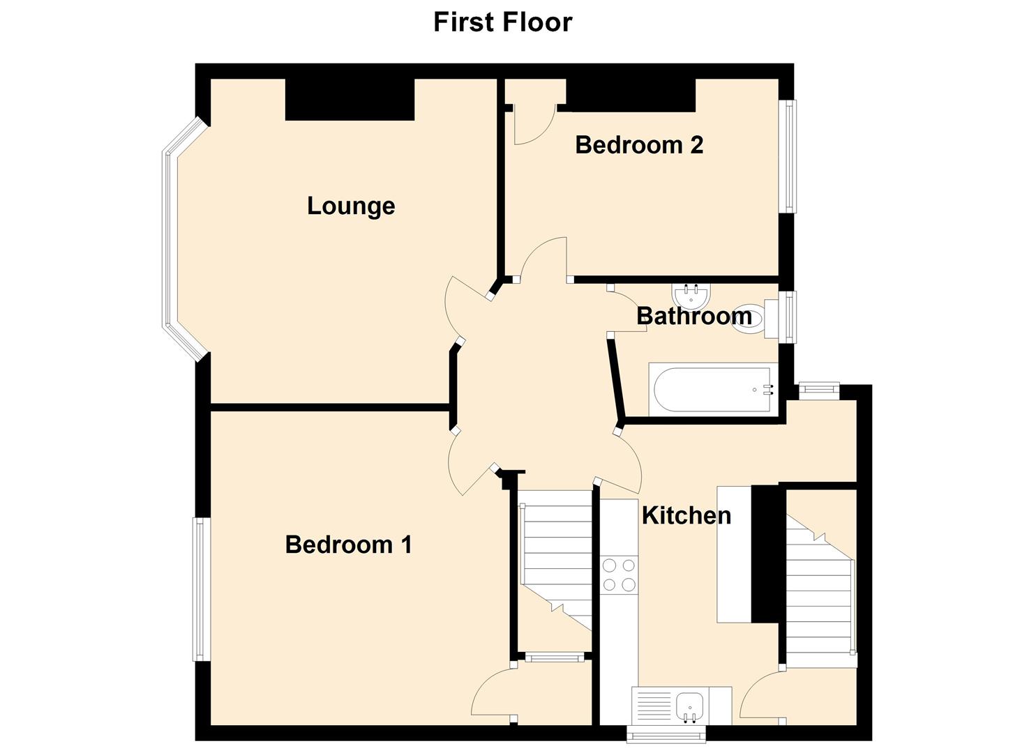 The accommodation briefly comprises: entrance hallway, spacious lounge with bay window and feature fireplace, fitted kitchen with wall and floor units, two double bedrooms- both benefitting from built-in storage, and a stylish three-piece family bathroom WC. The flat is double glazed and warmed with gas central heating. Externally, there is a lawned garden to the rear and off-street parking to the front.