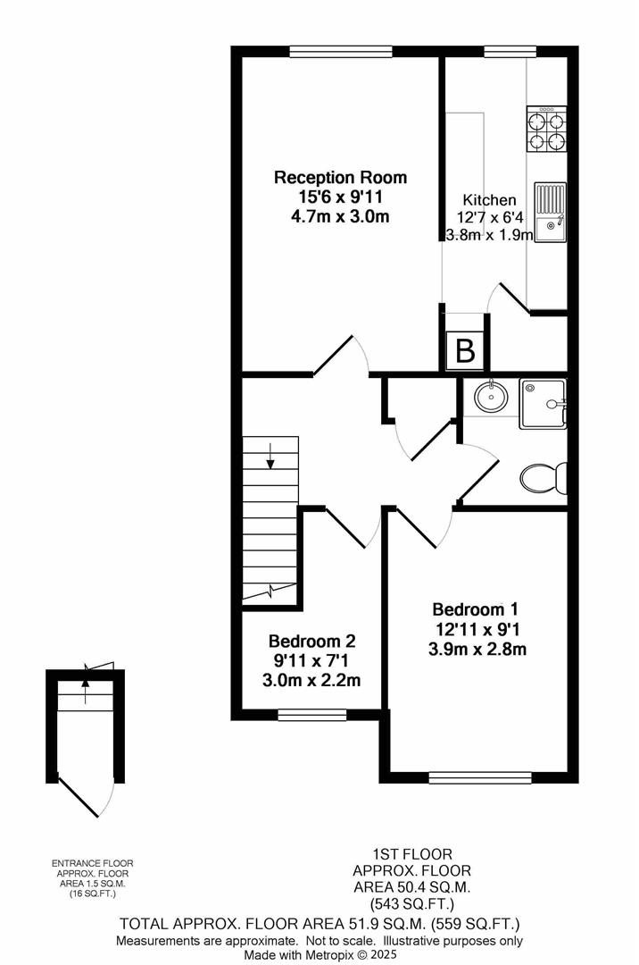 Description - This well presented first floor maisonette offers generously proportioned accommodation, comprising a spacious double bedroom, a versatile study or second bedroom, shower room, a large living room, and a fitted kitchen/breakfast room, set in a popular and convenient location.