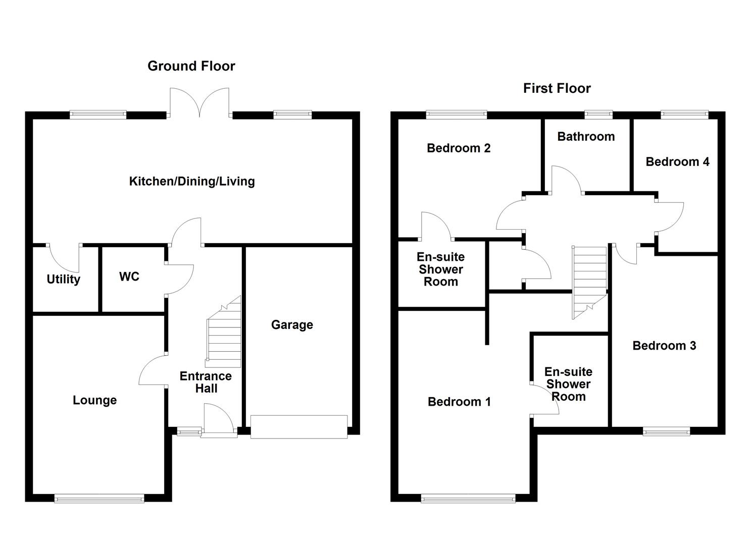A modern four bedroom detached property benefitting from ample reception space throughout, en suite shower rooms to two bedrooms and off street parking, this property is certainly not one to be missed.
