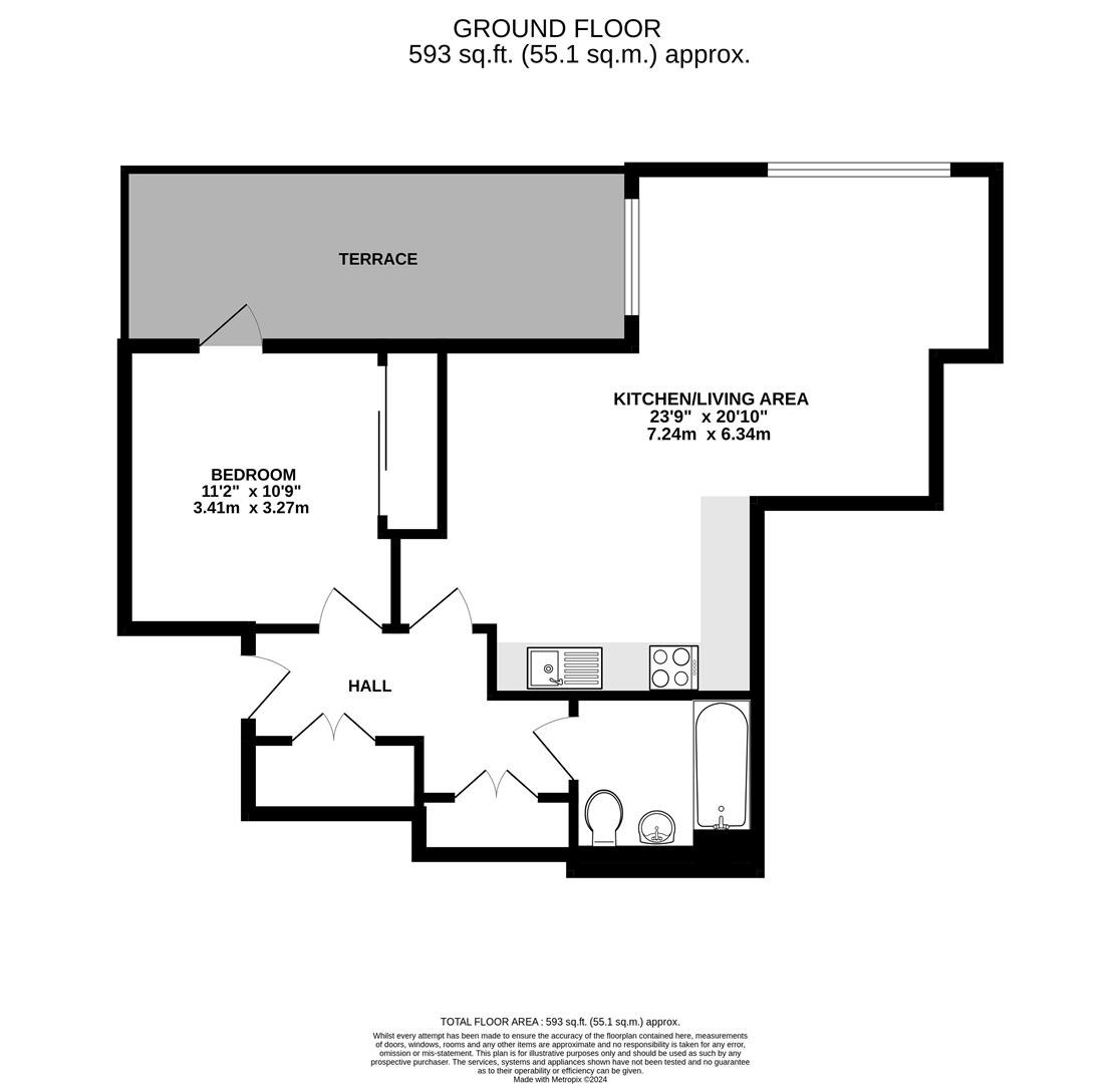 Accommodation - The apartment features an entrance hall with storage, a spacious open-plan kitchen and living area with integrated appliances and access to a private balcony. There is a double bedroom with built-in wardrobes and a modern bathroom finished to a high standard.