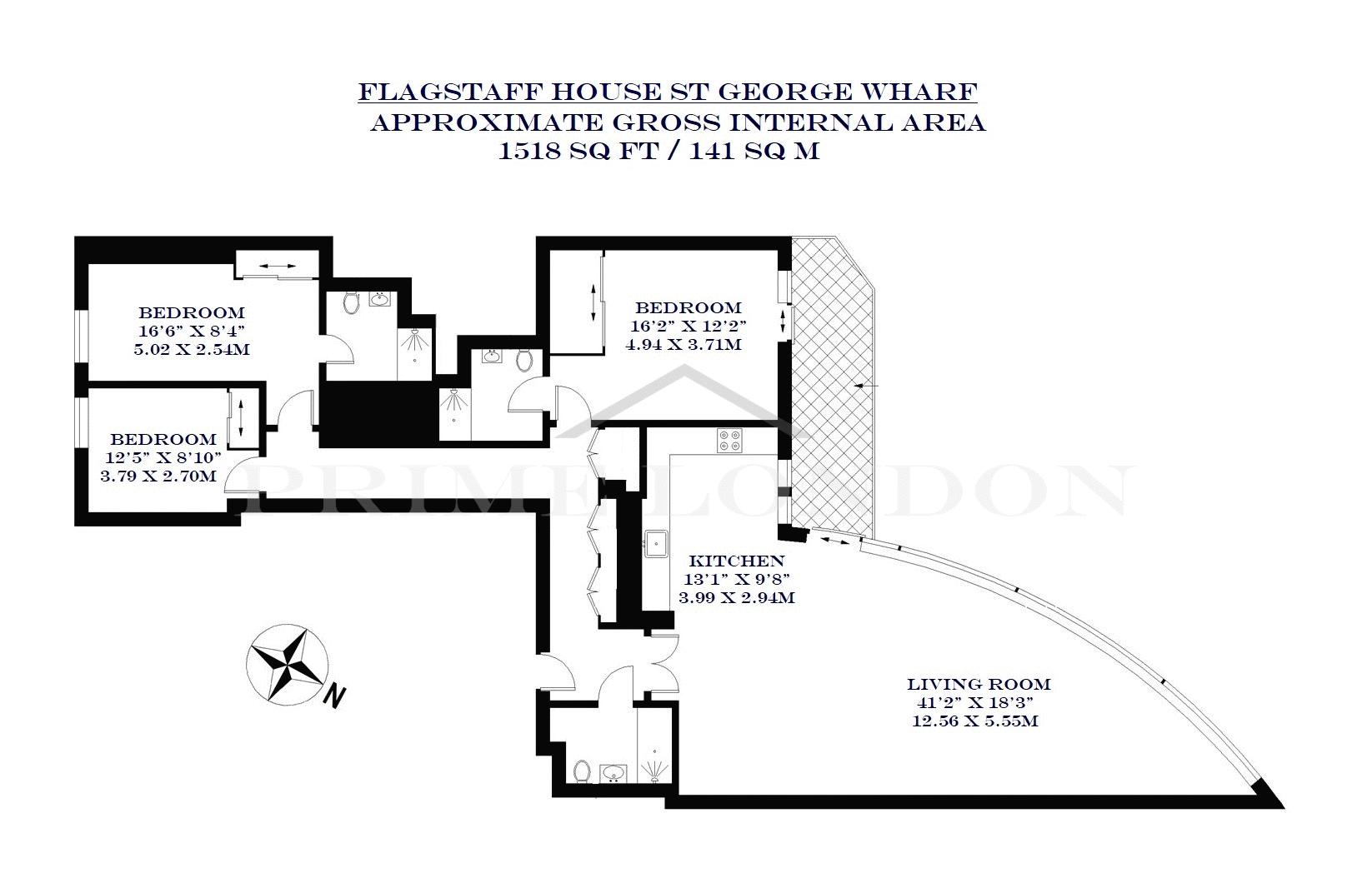 With fantastic views of the River Thames, this 1,518 sq ft / 141 sq m three bedroom three bathroom apartment, set in an excellent position within St George Warf, is available to rent through Prime London.