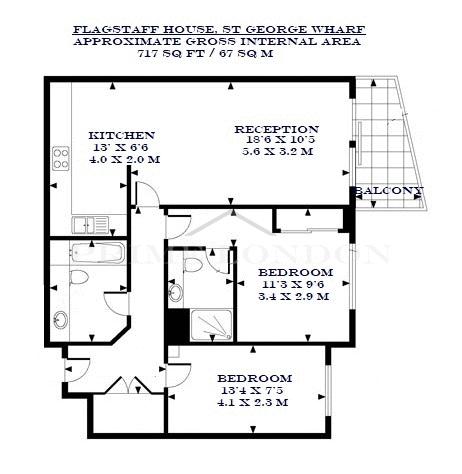 This modern two bedroom two bathroom apartment, with private balcony and measuring 717 sq ft / 67 sq m internally, comes fully furnished and is available to rent in St. George Wharf through Prime London.