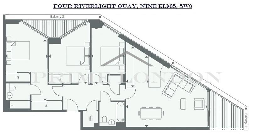 On the water's edge at the front of the building - an interior designed three bedroom apartment, with fantastic westerly river views and secure parking, available for lease through Prime London.