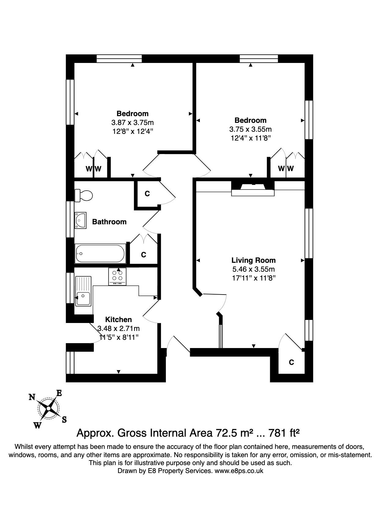FULL DESCRIPTION On the 1st floor, this spacious apartment has a great layout with lots of natural light and plenty of space. Furnished with the exception of beds, the apartment offers entrance hall, spacious living/dining room, Fitted well proportioned kitchen, two double bedrooms and bathroom with shower over bath.
