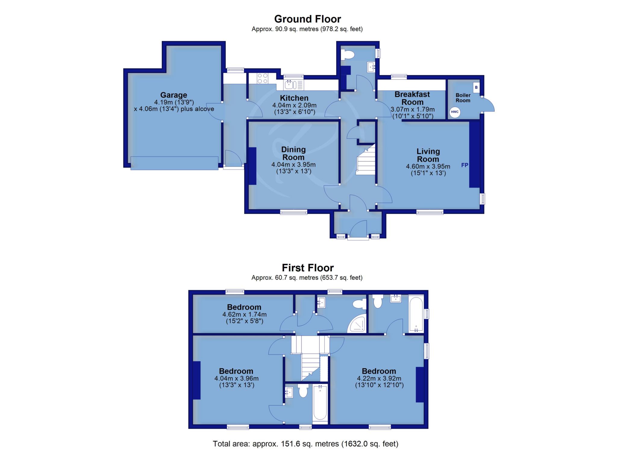 To the first floor are 3 comfortable bedrooms and the shower room, with en-suites to each of the 2 large double rooms.