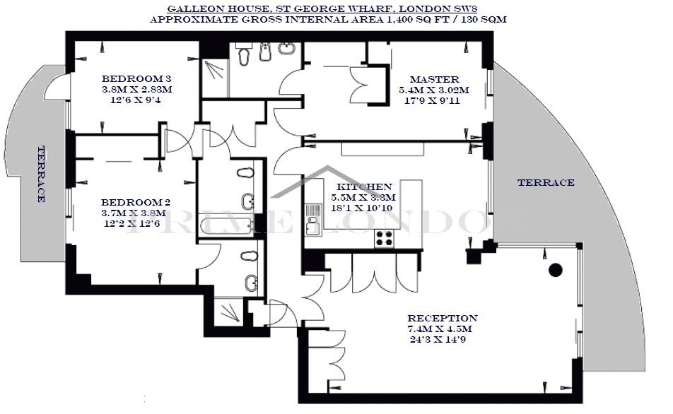 With fantastic views and a large river-facing terrace, this 1,400 sq ft (130 sqm) three bedroom, three bathroom apartment is offered exclusively through Prime London, and offers an excellent position and aspect within this centrally located riverside development, St. George Wharf.