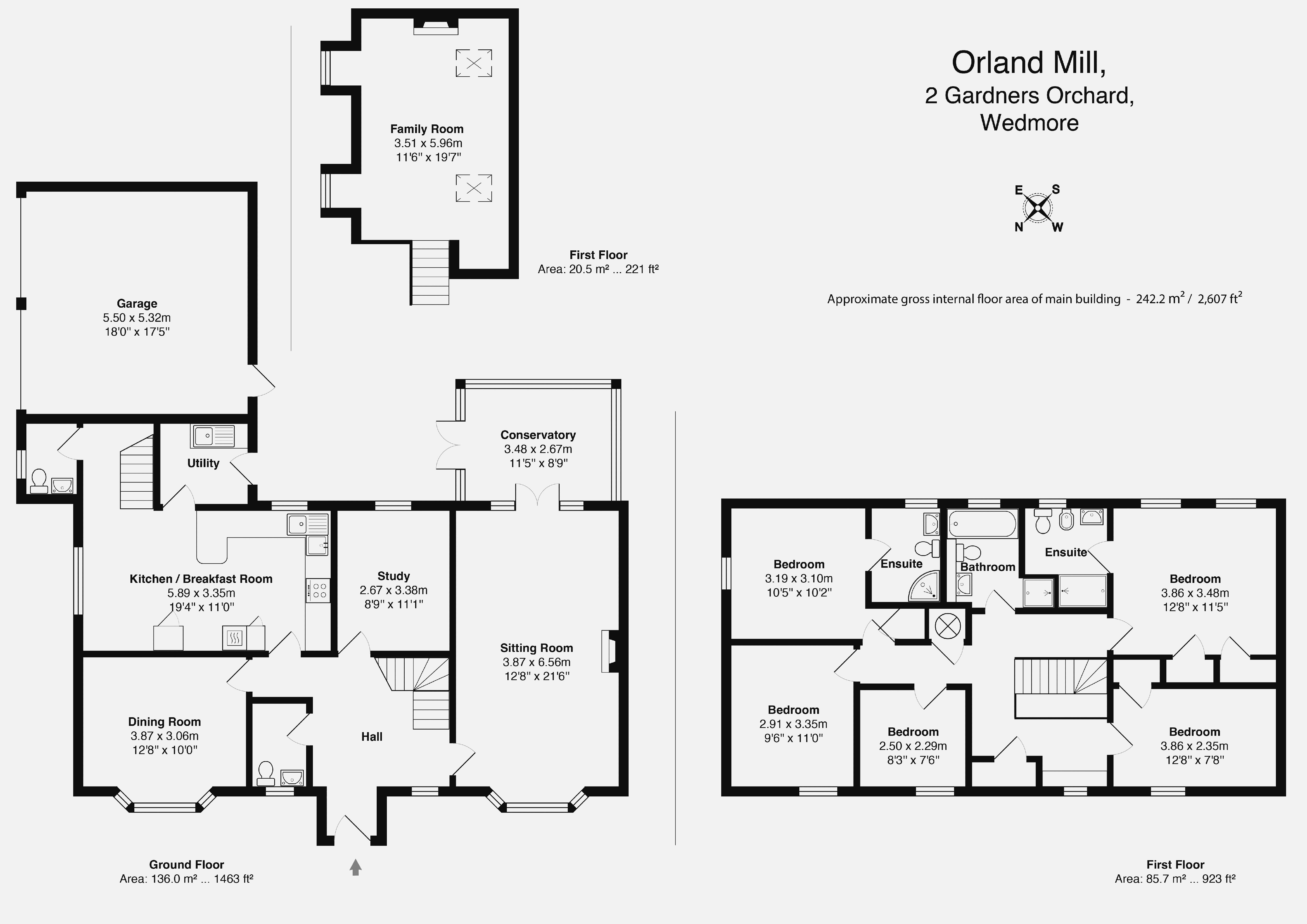 Orland Mill is a superb, well-proportioned property constructed in the 1990's. The accommodation is elegant and spacious downstairs with coving, ceiling roses and dado rails. Upstairs there are plenty of bedrooms and bathrooms, along with a versatile family room and an enormous, boarded attic. The house sits attractively in a mature plot and enjoys seclusion and privacy.