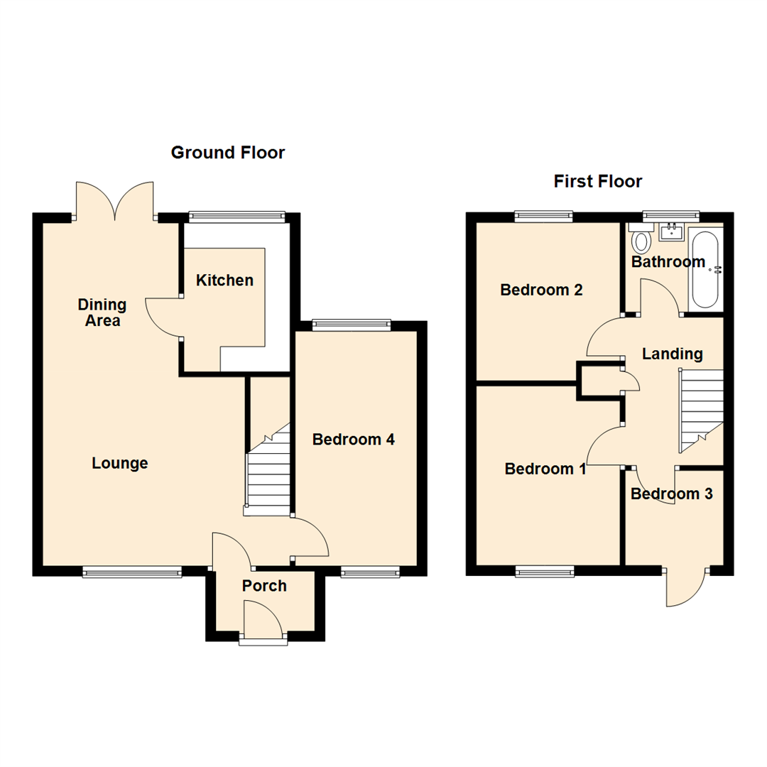 Briefly comprising to the ground floor: - entrance porch, bright and airy, open plan lounge dining room with French doors to the rear garden, a modern kitchen with fitted wall and floor units and a ground floor bedroom which is accessed off the lounge. To the first floor there are three good-sized bedrooms and a modern family bathroom WC with shower over the bath. The property further benefits from gas central heating and double glazing