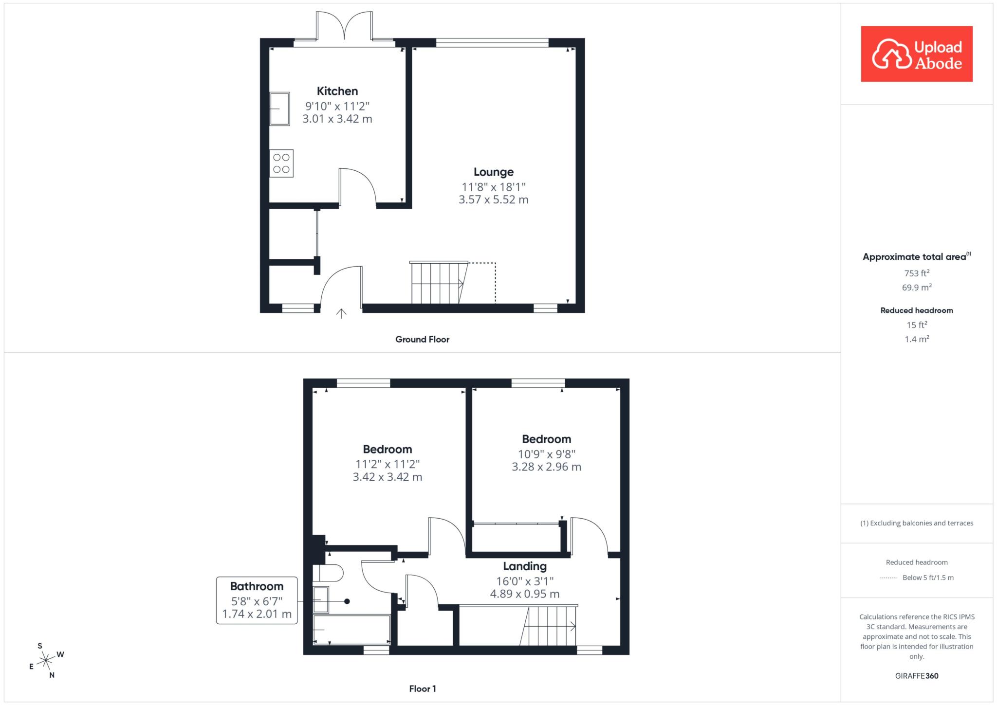 Upstairs, two impressively sized bedrooms sit either side of the landing. The principal room offers generous floor space for a king sized bed along with wardrobes and additional furniture, all while maintaining a calm, uncluttered feel. The second bedroom is equally well proportioned