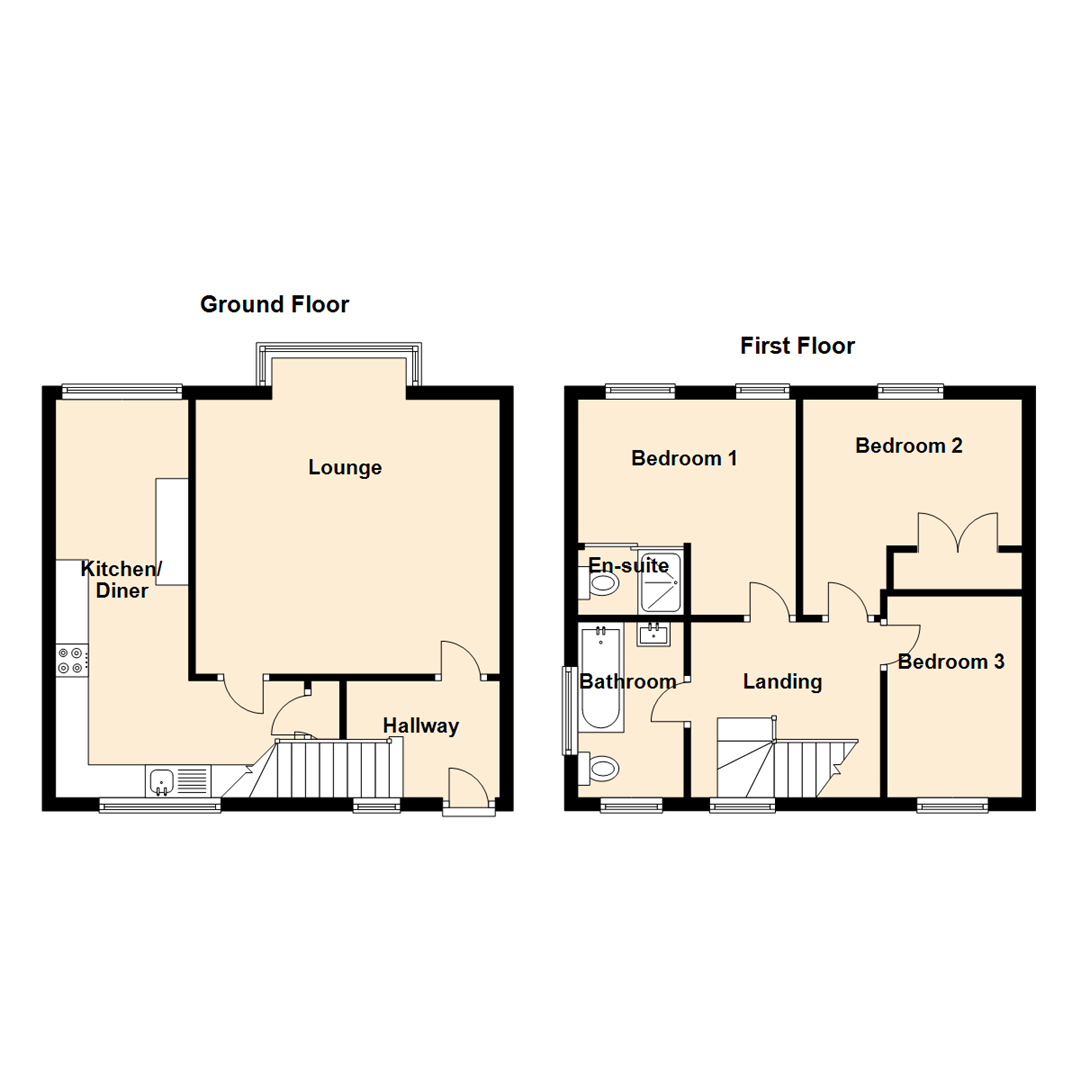 The accommodation briefly comprises, on the ground floor, an entrance hallway leading to a spacious lounge featuring a bay window that provides plenty of natural light. The kitchen/dining room offers fitted units along with an integrated oven and hob, creating a practical cooking and dining space. A return staircase leads to the first floor and there are three well-proportioned bedrooms, the main with an en suite, alongside a modern family bathroom WC complete with a shower over the bath. Further benefits include gas central heating and double glazing.