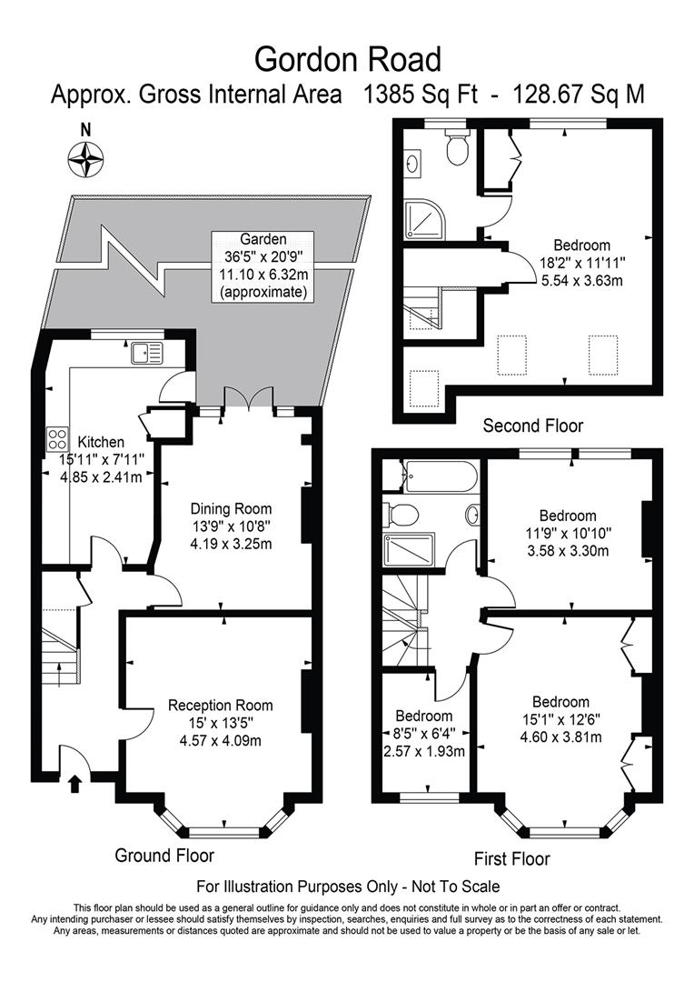 On the first floor you will discover two double bedrooms; the large of the two featuring fitted wardrobes, whist the second double bedroom is beautifully light thanks to the double sash windows overlooking the garden. There is also generous single bedroom, whilst the sizable family bathroom enjoys a separate shower cubicle as well as a bathtub.
