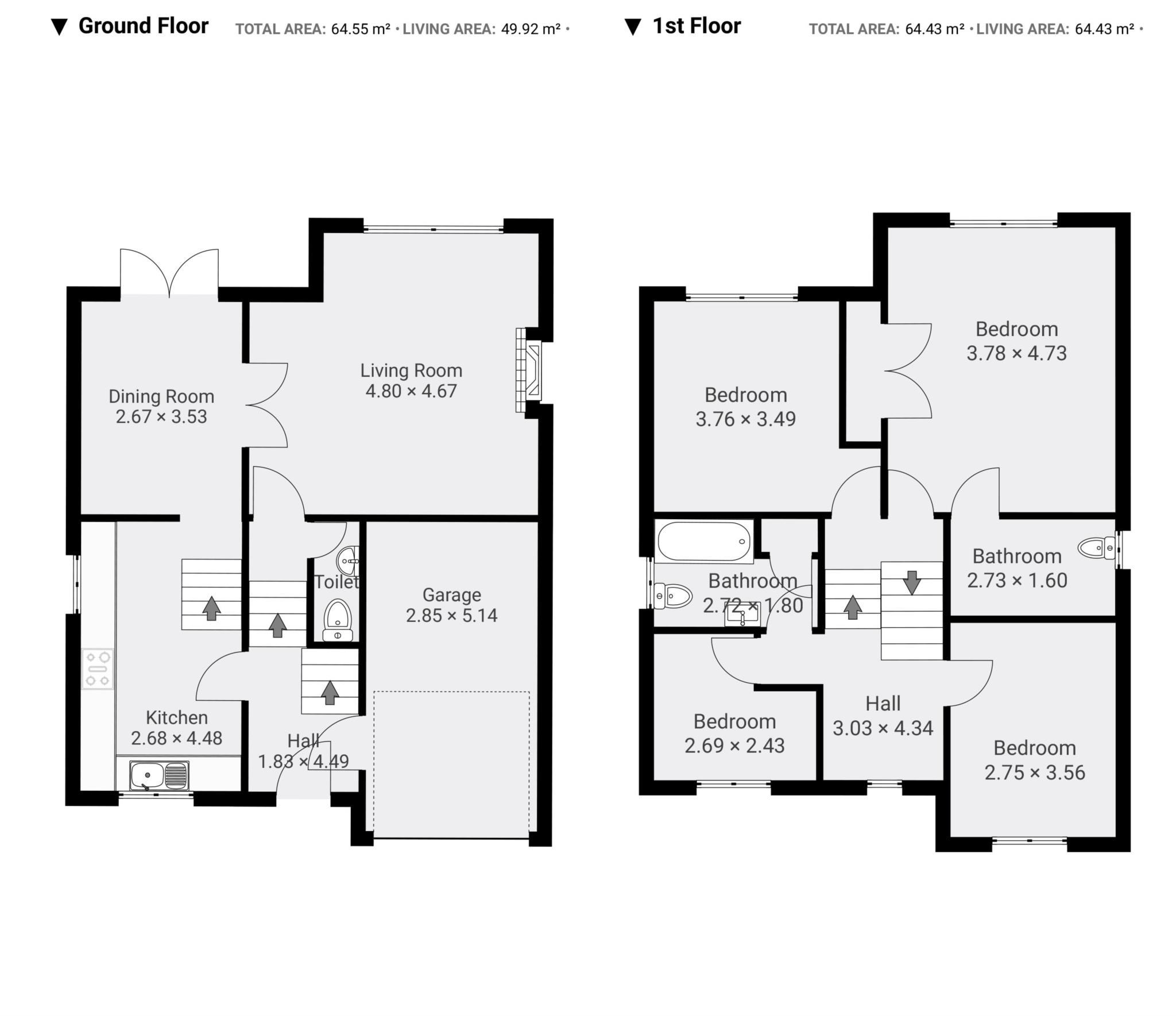 On entering the property, you are welcomed into a bright and spacious entrance hall which sets the tone for the rest of the home. From here, you are led into the stylish fully fitted kitchen, which features a range of high-quality units topped with elegant granite worktops. Integrated Bosch appliances include an under counter fridge and freezer, a dishwasher, and an extractor fan, while a free standing range cooker serves as a striking focal point. Steps lead down to the dining area, a wonderful space for entertaining that is flooded with natural light thanks to the large French doors opening directly onto the rear garden seamlessly blending indoor and outdoor living. Adjoining this space, double doors open into a generously sized living room, beautifully finished with a feature fireplace. A downstairs WC is also conveniently located on this level, and the entrance hall provides integral access to the garage, offering excellent storage or parking.