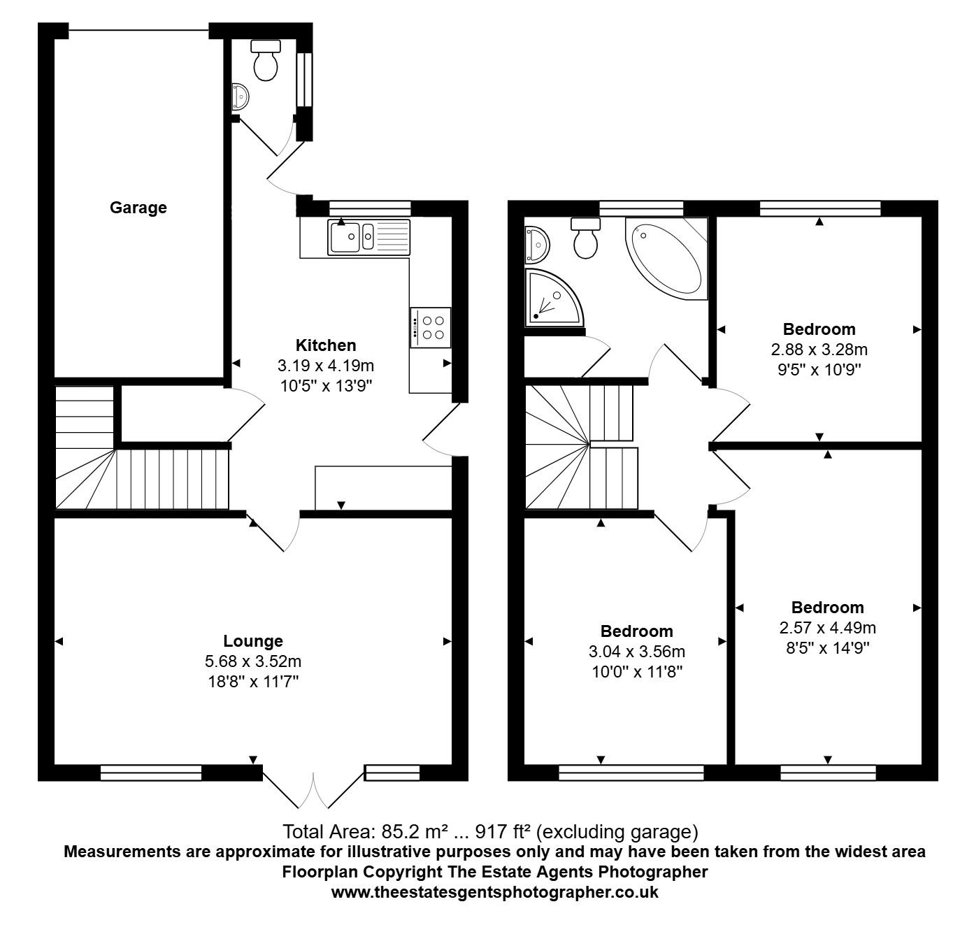 Bedroom Two - 10'9" (3.28m) x 9'5" (2.87m)