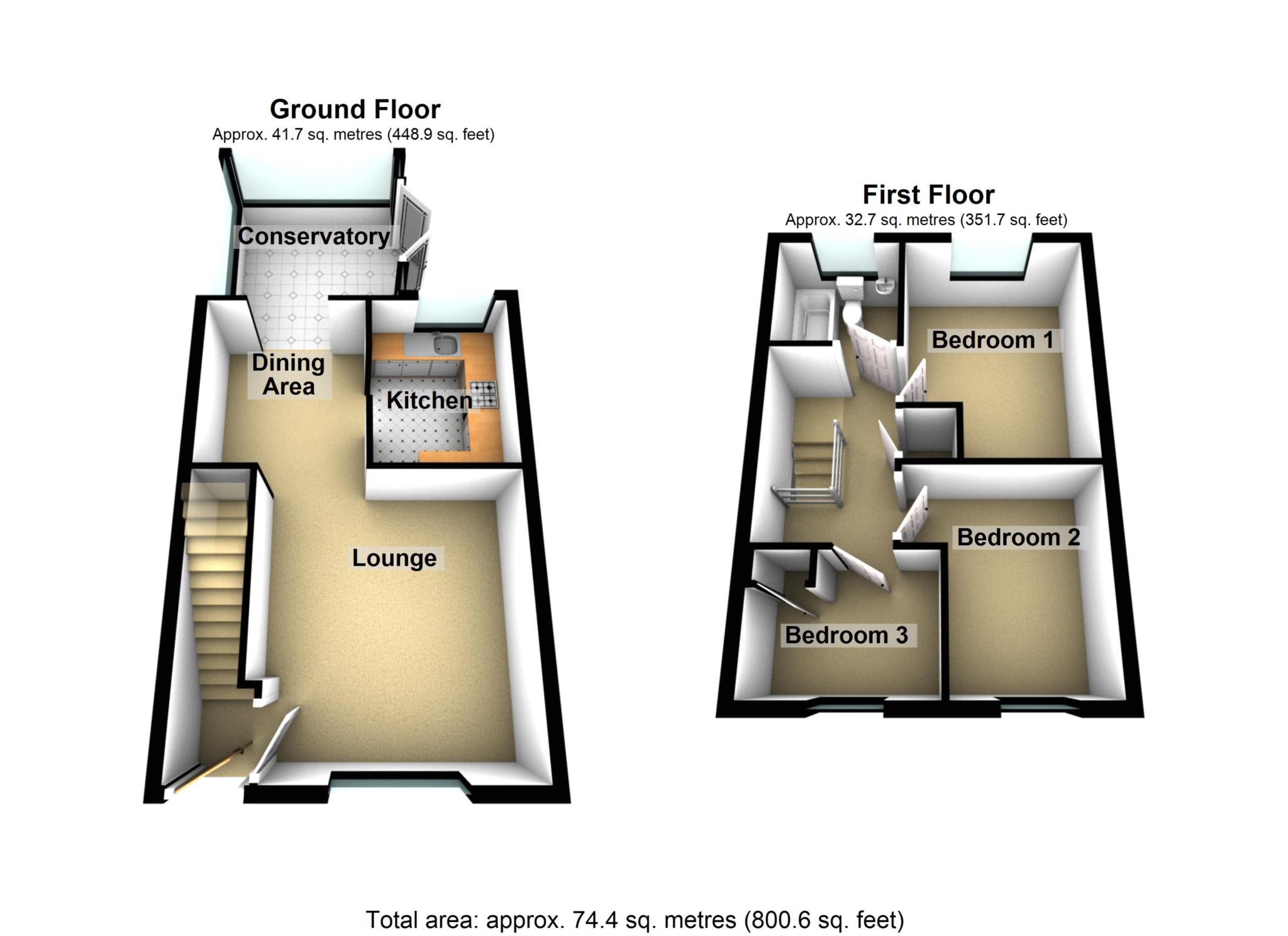 On the ground floor, you will find a generously sized modern Fitted Kitchen (with plenty of wall and base units) and enough space for a table and chairs in the adjoined dining room. There is also a stylish Lounge/Dining area and Conservatory. Upstairs there are three bedrooms and a large, fully tiled family Bathroom.