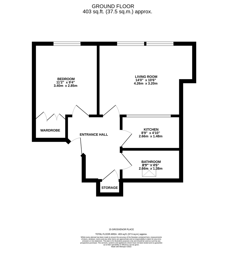 You enter the flat to a hallway, with a cupboard and shelves for keys and post. The living room has double windows allowing plenty of natural light and making the most of the views. The adjacent kitchen has a window through to the living room, and is fitted with white goods including an oven with hob, fridge, and washing machine. The bedroom is a double, with two fitted wardrobes offering plenty of storage space. The bathroom is fitted with a white suite including shower over bath, WC, and hand basin with a cupboard underneath.