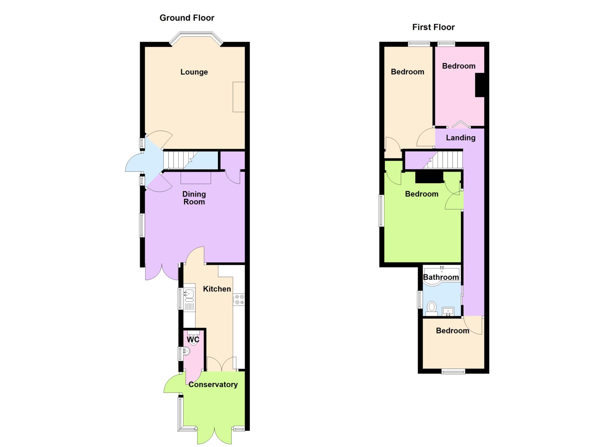 PVCu double glazed sash windows, French doors to garden, radiator, fire surround with cast iron inset, understairs cupboard with meters, laminate flooring, 2 wall lights.
