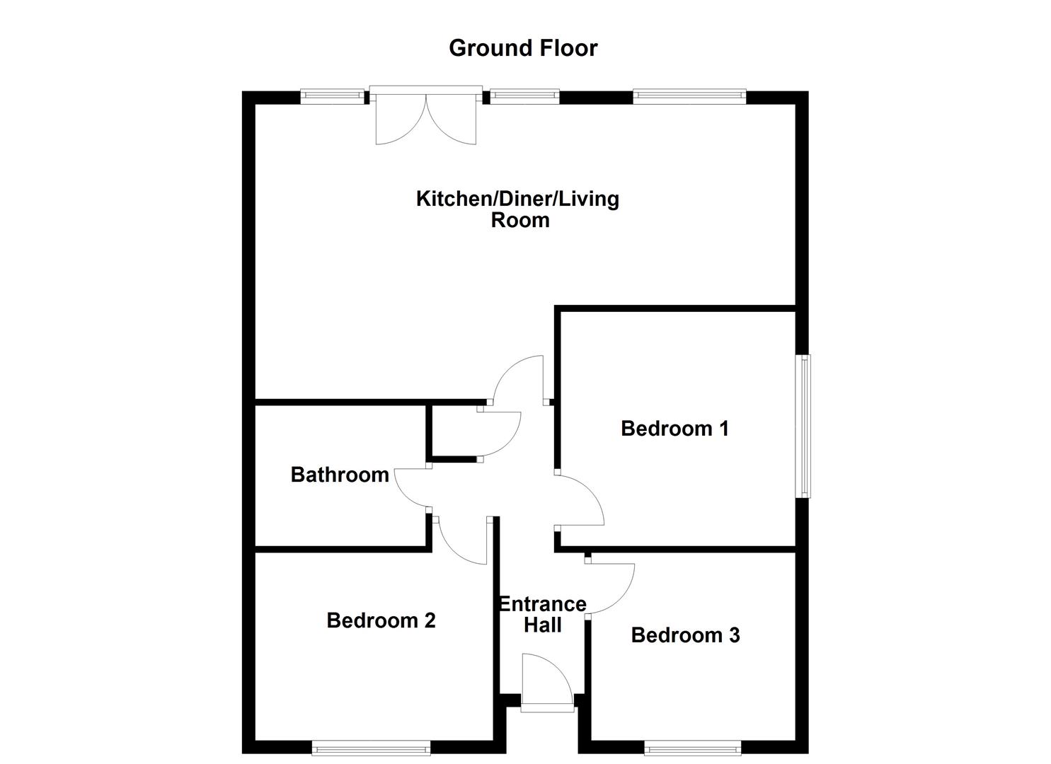 Entrance Hall - Composite entrance door, recess ceiling spotlights, loft access, radiator, laminate floor and doors to a storage cupboard, three bedrooms, bathroom and kitchen/dining/living room.