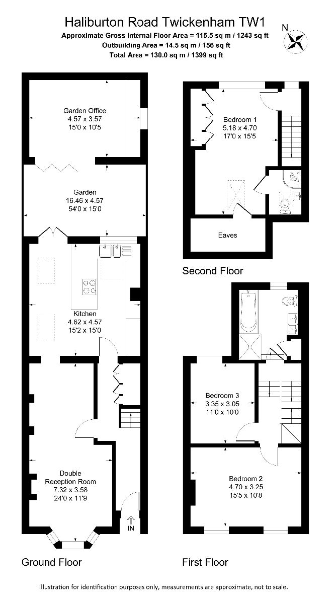 To the ground floor, the living space comprises an entrance hall, double reception with wooden flooring, bespoke cabinetry and character fireplace, and a super and well equipped extended kitchen-diner with high vault ceilings and French doors leading into the garden. The first floor offers two spacious double bedrooms (the larger incorporating built-in wardrobes) and a fabulous family bathroom with separate shower. The second floor features a wonderful master suite, complete with en suite shower room and bags of storage, with lovely rooftop views across gardens and All Souls Church.