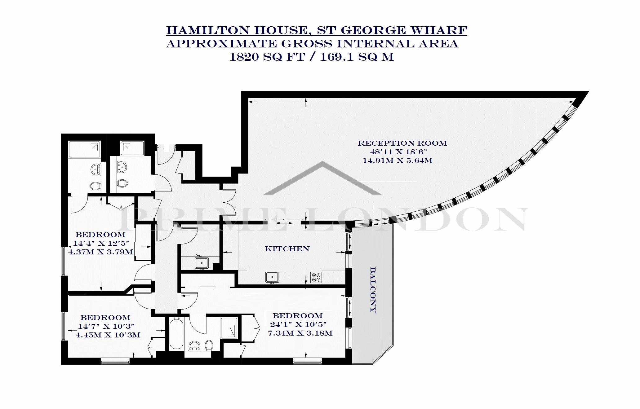 This exceptional larger style prow three bedroom three bathroom apartment, with spectacular views towards the London Eye, comes beautifully furnished and is available for chain free sale in Hamilton House, St George Wharf through Prime London.