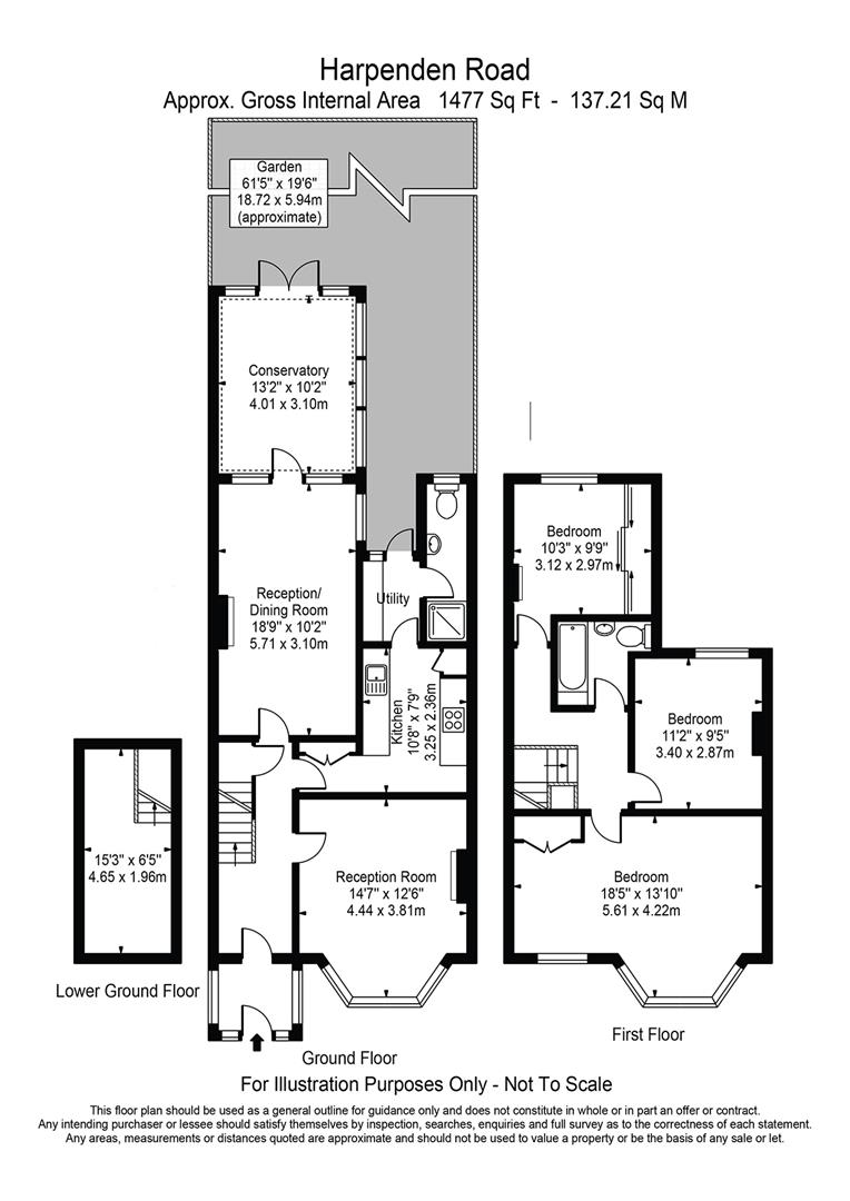 The rear reception stretches deep and opens onto a handy extension with French doors providing a space for a formal dining room, playroom, or creative studio overlooking the southerly garden. The kitchen runs galley-style, lined with units on both sides for heaps of worktop space, storage, and room for all your appliances - with direct access out to the garden for easy alfresco living.