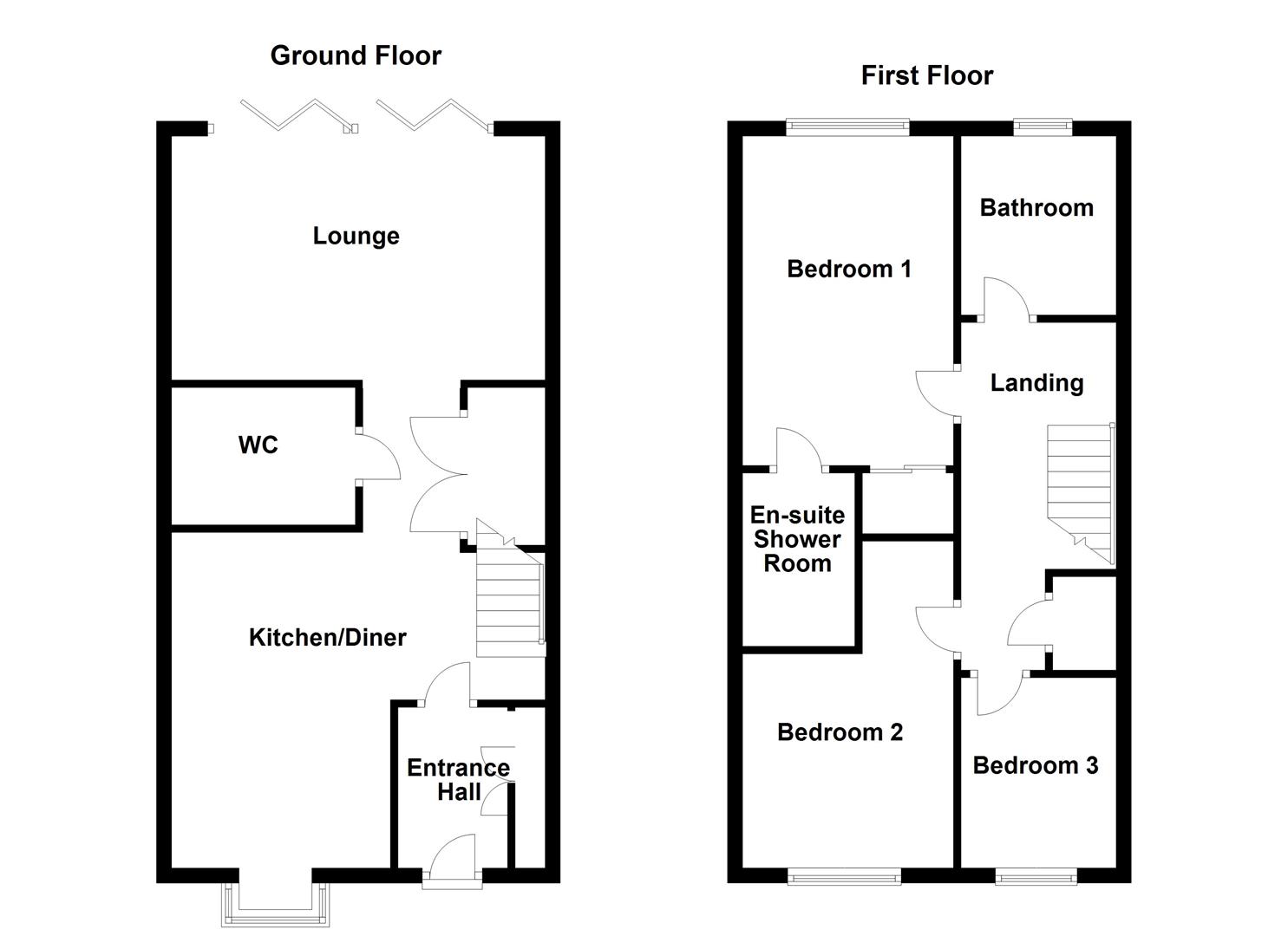 The property fully comprises of the entrance hall, open plan kitchen/diner, a large easily accessible downstairs w.c. and lounge. Stairs to the first floor lead to three bedrooms (two of which good sized doubles) with the principal bedroom boasting en suite shower room and additional contemporary house bathroom. Outside there is a driveway providing off street parking for two vehicles at the front and lawned garden to the rear incorporating flagged and decked patio areas.