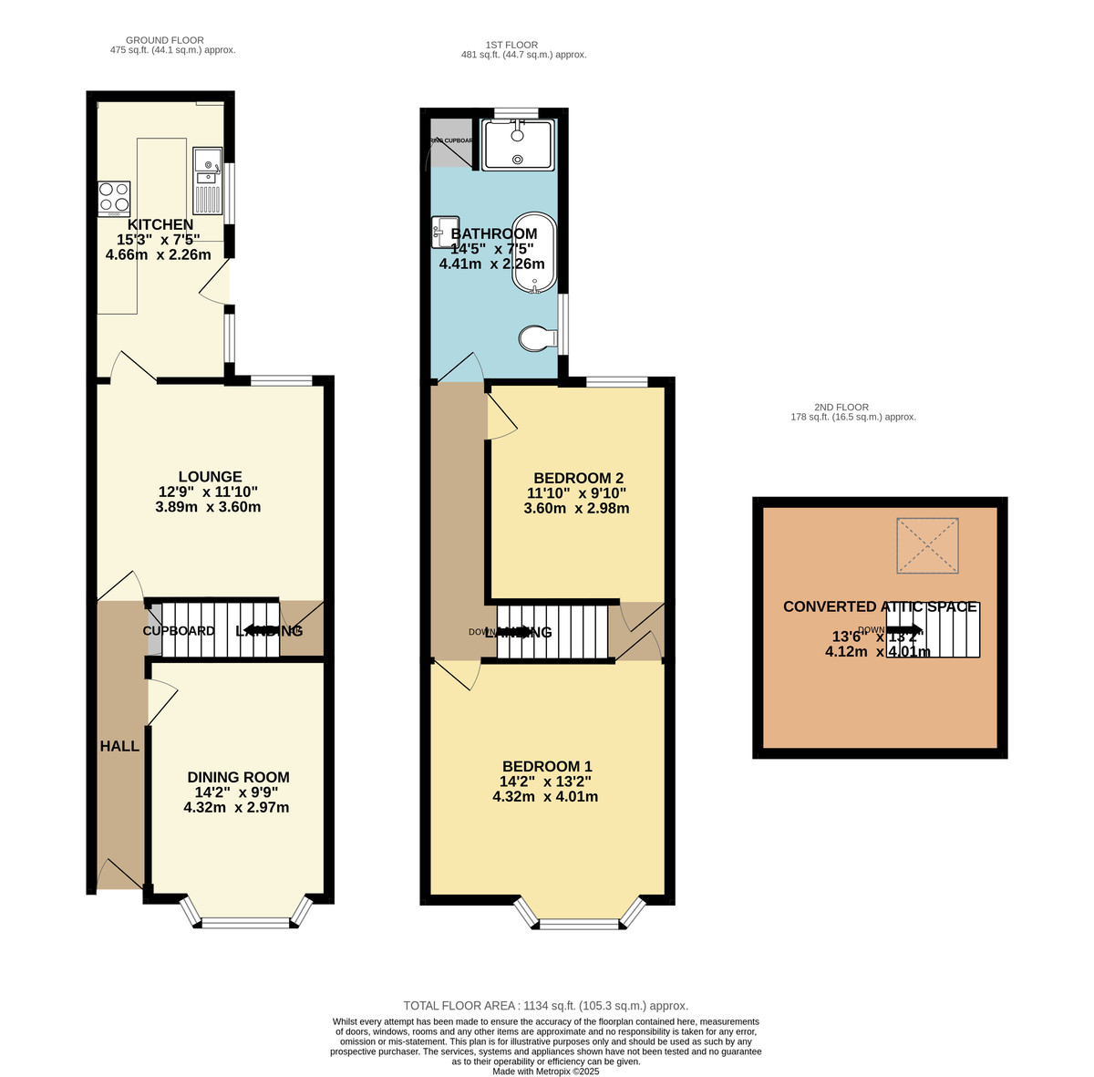CONVERTED ATTIC Accessed via stairs from both bedrooms, this versatile space features wooden flooring, a skylight window, power, and lighting-perfect as an office, studio, or hobby room.