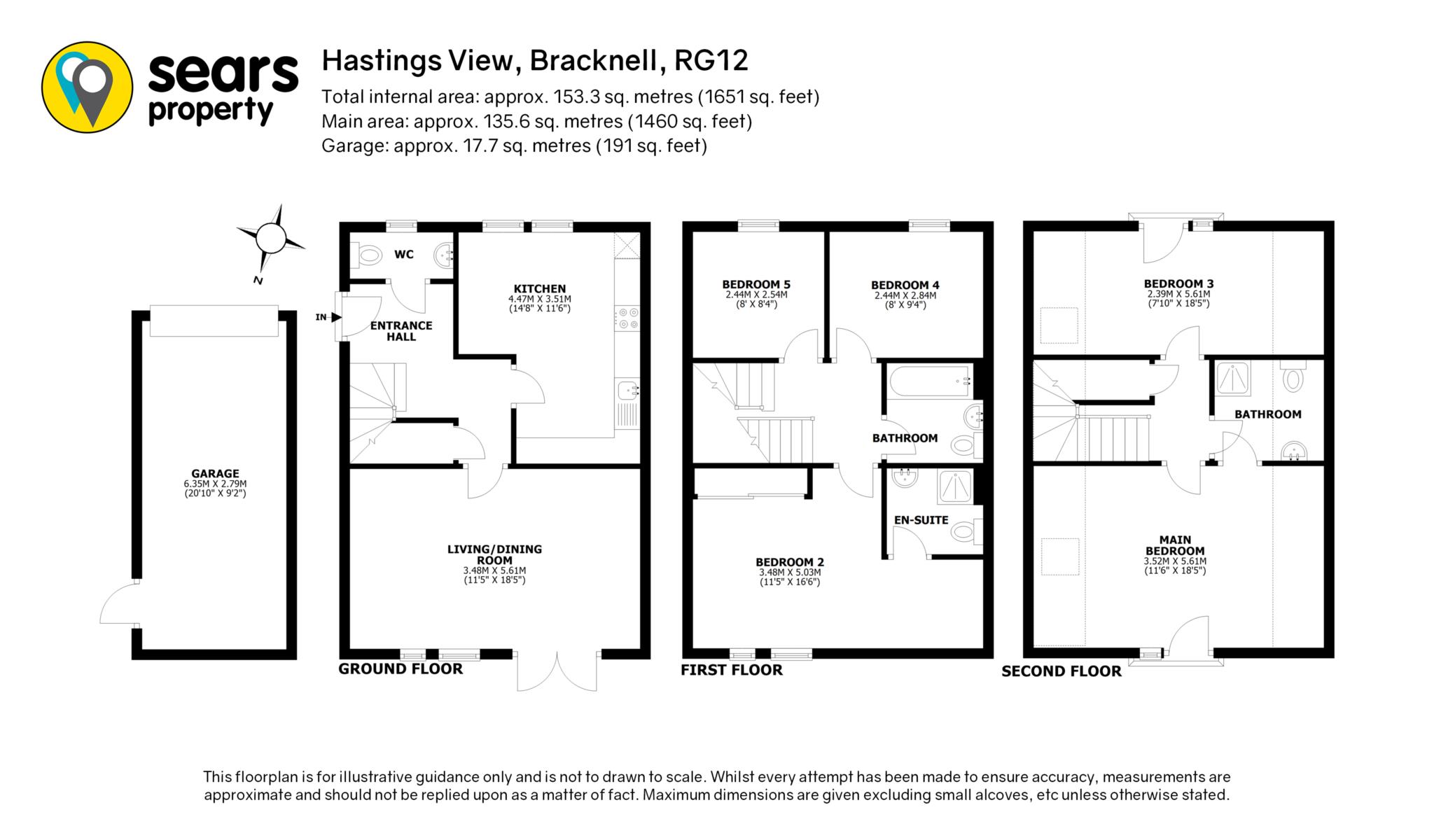 The first floor includes three bedrooms and a family bathroom. The master bedroom benefits from an en-suite and plenty of built-in storage. The second floor offers two additional double bedrooms and a Jack and Jill bathroom, providing flexible accommodation suitable for family or guests.