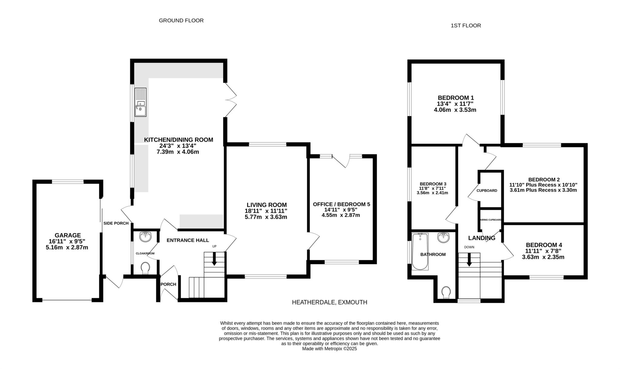 Gas centrally heated and double glazed, the accommodation comprises on the ground floor: a cloakroom, a dual-aspect living room, a dual-aspect kitchen/dining room, and a versatile dual-aspect office/bedroom five.