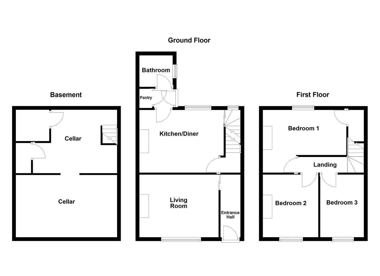 The property briefly comprises of the entrance hall, cellar, living room, kitchen dining room, further hallway, bathroom and pantry to complete the first floor. To the first floor there is access to three bedrooms, bedroom one benefitting from a storage cupboard and loft access. To the front of the property is the main garden area and comprises of a low maintenance pebbled garden with planted features, a pond, a block paved patio area and a pathway leading up to the front door, all of which is enclosed by timber fencing with a timber gate providing access. To the rear of the property is a small concrete courtyard area which is low maintenance and surrounded by walls. Just beyond the backs of the property we can find a single detached garage providing off road parking with a set of double doors and a timber built garden shed.