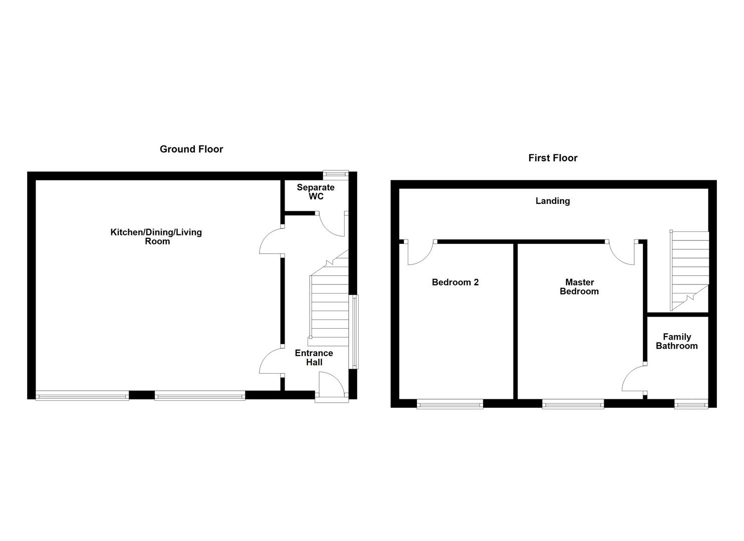 Entrance Hall - UPVC front entrance door, stairs to the first floor landing with UPVC double glazed windows to the side elevation and doors to the open plan kitchen/dining/living room and downstairs w.c.